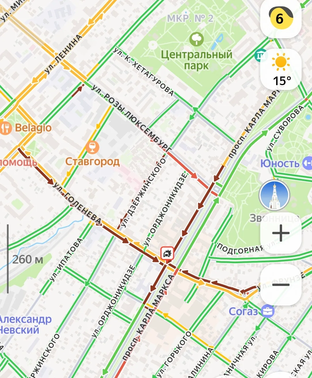 Если вы сейчас направляетесь из центра на северо-запад или наоброт, лучше ищите объездные пути. На перекрёстке тройное ДТП, по словам очевидцев столкнулись маршрутка и две легковушки.