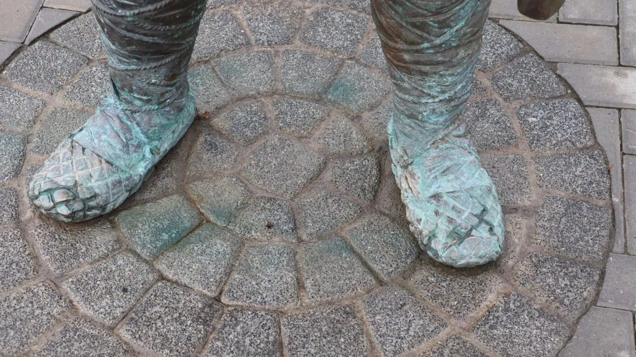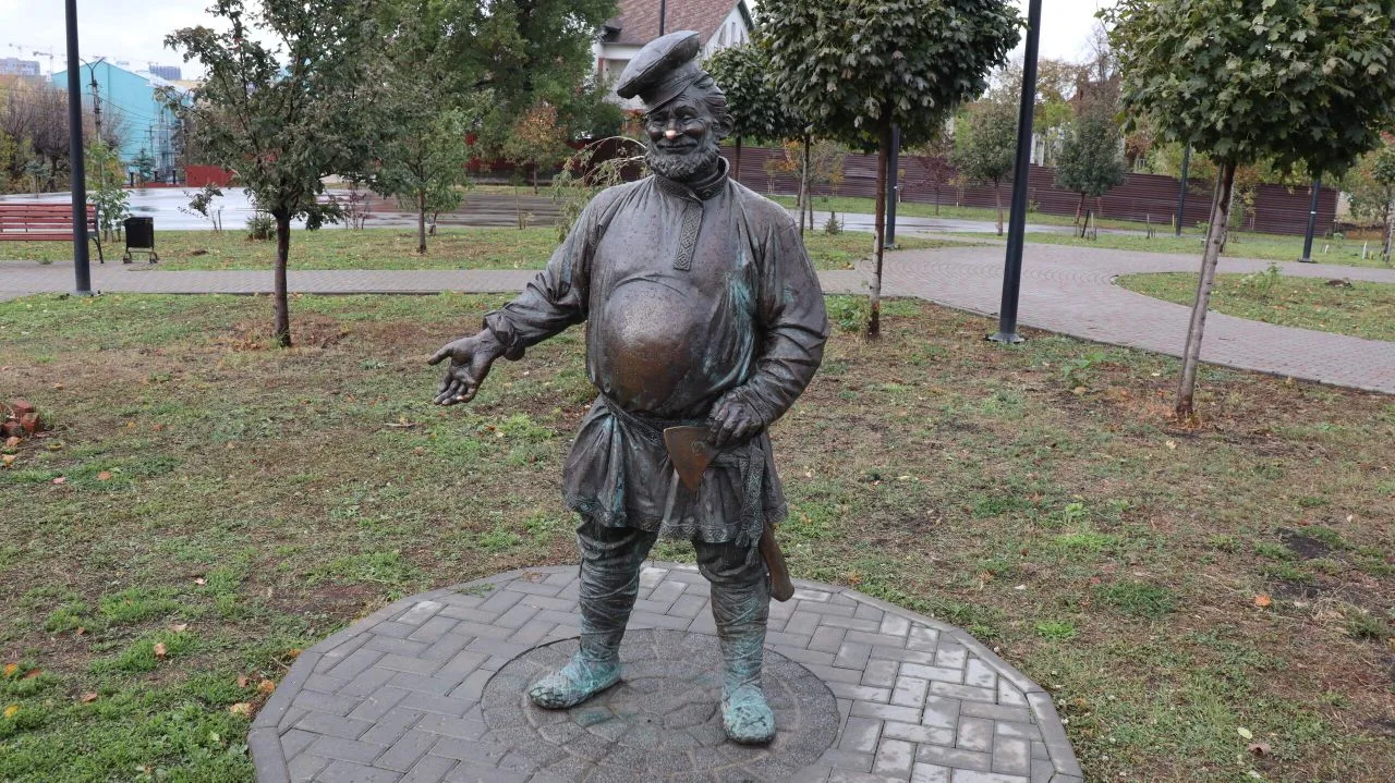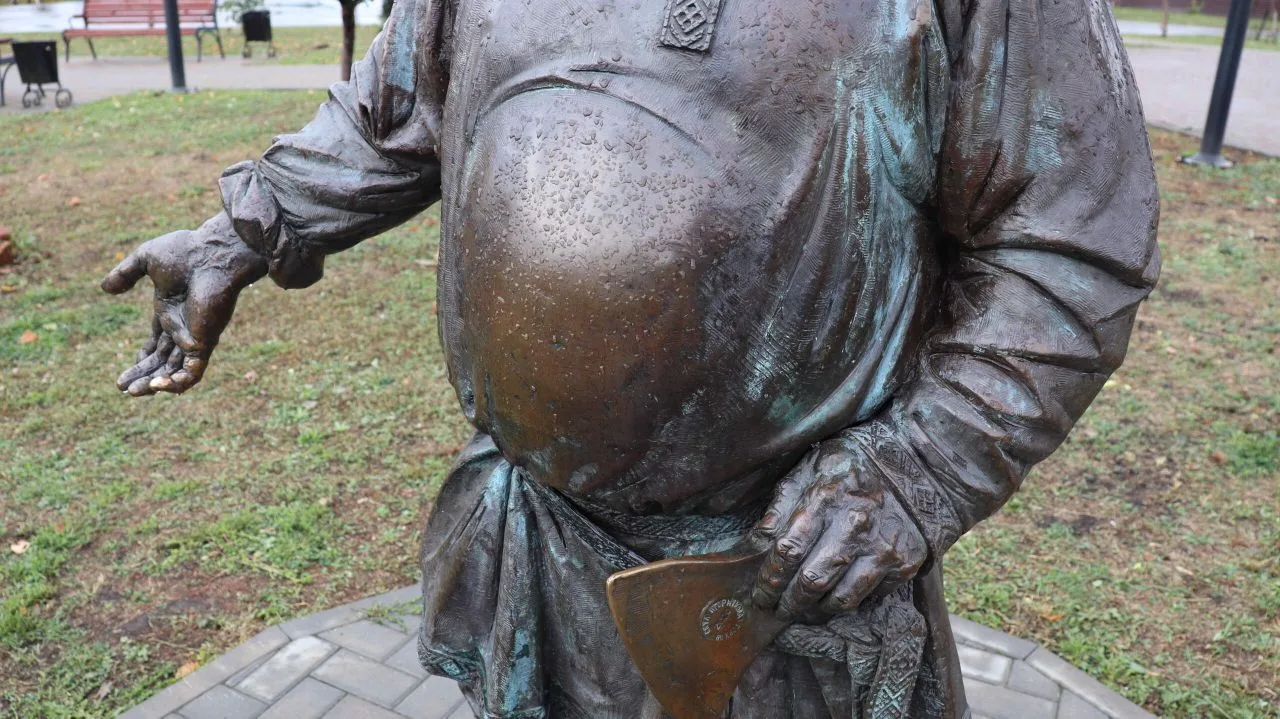 На фото – скульптура в Рязани. Кстати, как понять, что плотник – успешный, качественный мастер? А по картузу. Видите, на скульптуре отсутствует кошель. Куда мастер складывал заработанное? В головной убор. И у нашего героя явно дела идут прекрасно)