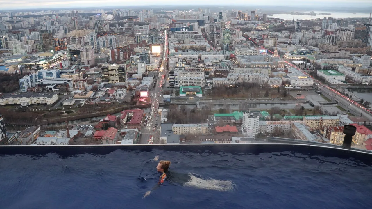 Да, это знаменитый открытый бассейн на вершине бизнес-центра «Высоцкий» – одна из самых эпичных локаций для фото в уральской столице.