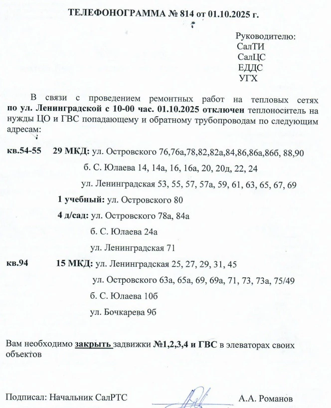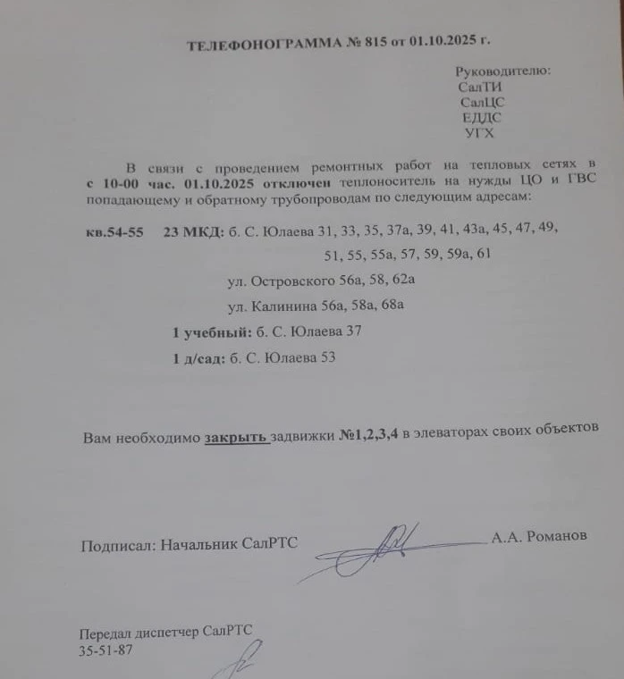 ❗️В Салавате с 1 октября 10.00 отключили отопление и горячую воду, по следующим адресам: