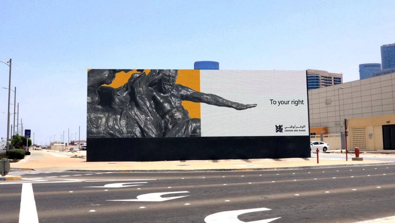 Музей Лувр Абу-Даби придумал гениально простую вещь: превратил свои произведения искусства в систему навигации. Картины здесь работают как дорожные знаки — из коллекции выбрали полотна, где персонажи указывают пальцем или тянут руку, и добавили подписи вроде This Way.