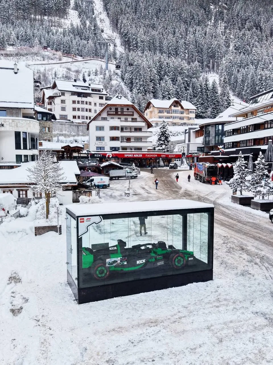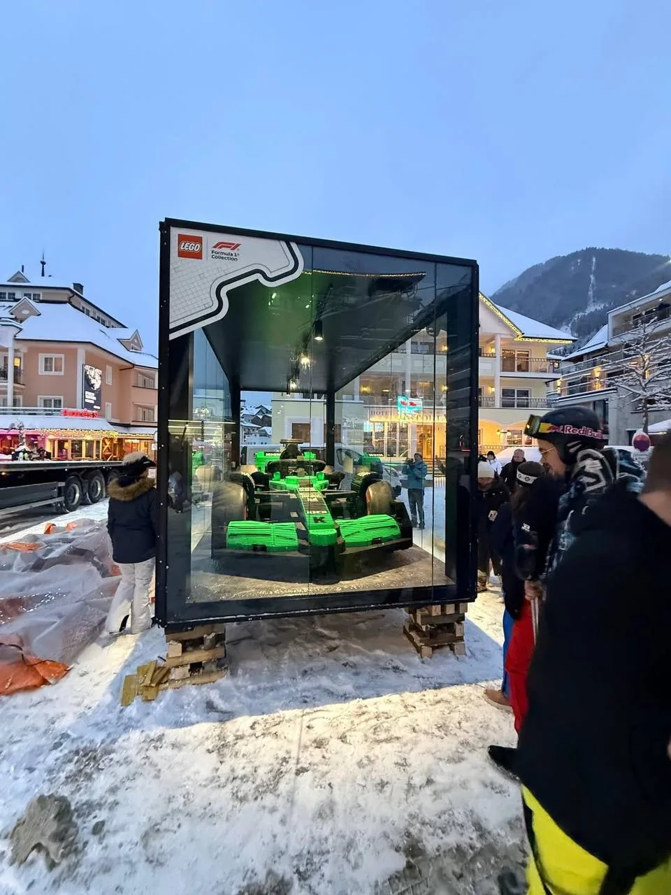 LEGO и Формула‑1 продолжают мировое турне с болидами, собранными из кубиков в натуральную величину. На этот раз «игрушка» из почти 200 000 деталей и весом более 900 кг притягивала толпы на горнолыжном курорте в Германии — там, где вообще-то ждёшь лыжи, а не болиду.