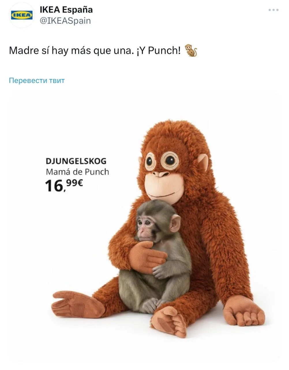 IKEA (испанский аккаунт) быстро отреагировали и выложили пост с подписью «Мама Панча» — намекая на свою игрушку.