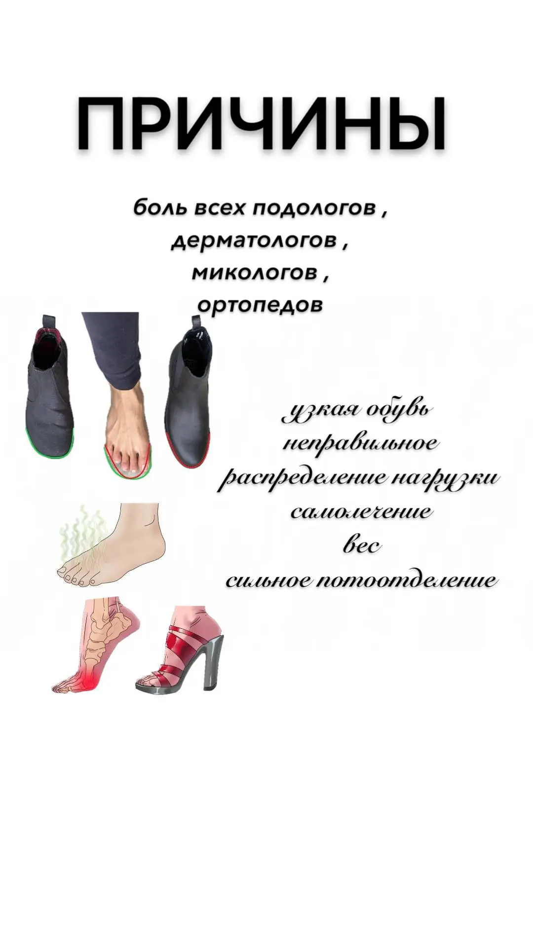 -неудобная обувь (узкий носок, высокий каблук, тонкая подошва) 👠;