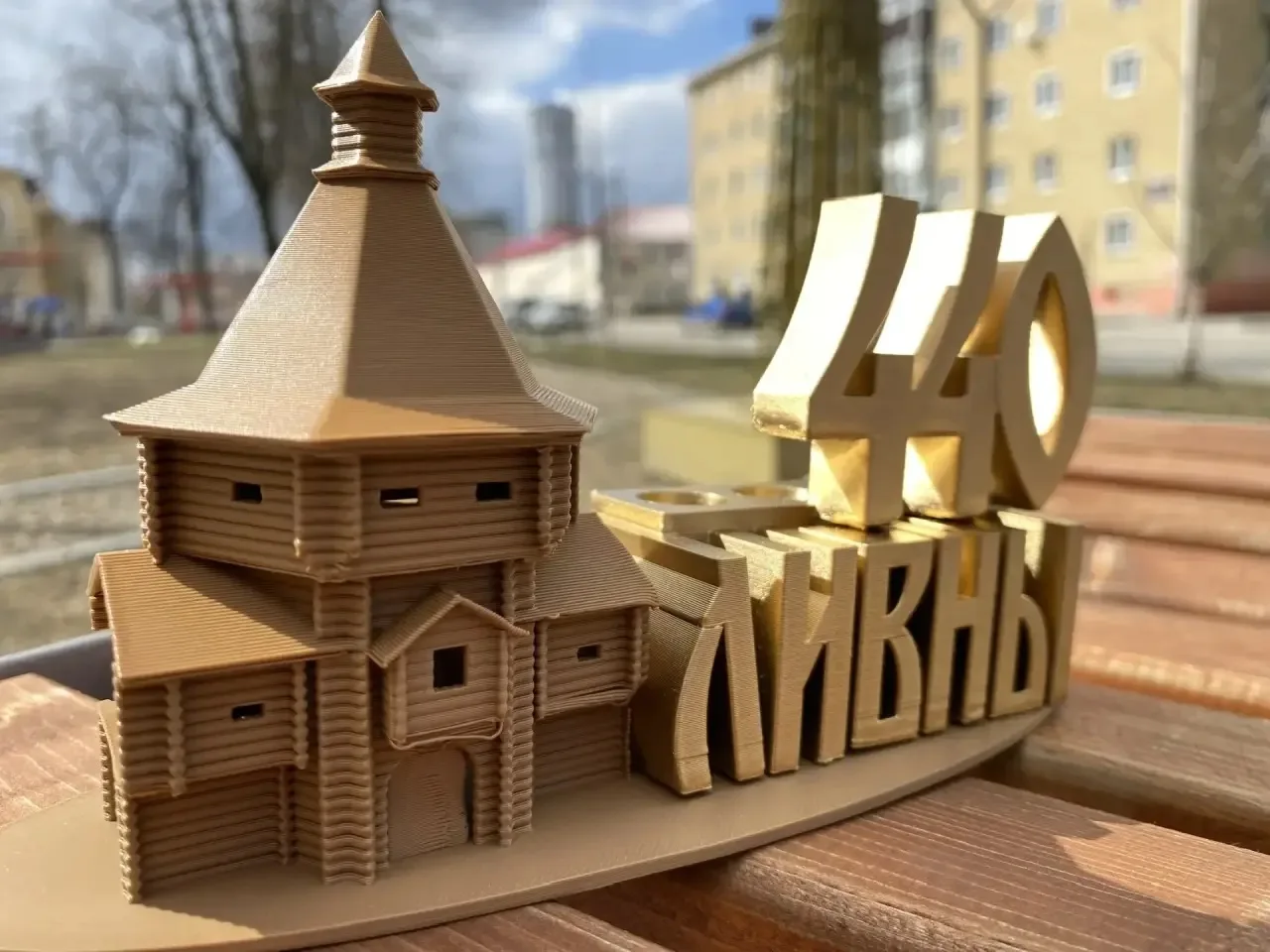 В честь 440-летия Ливен Юрий Соколов изготовил на 3D принтере настольный органайзер в виде башни Ливенской крепости.