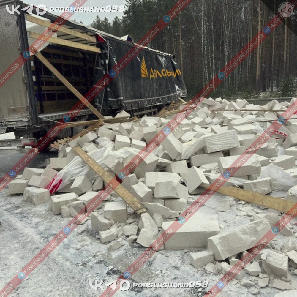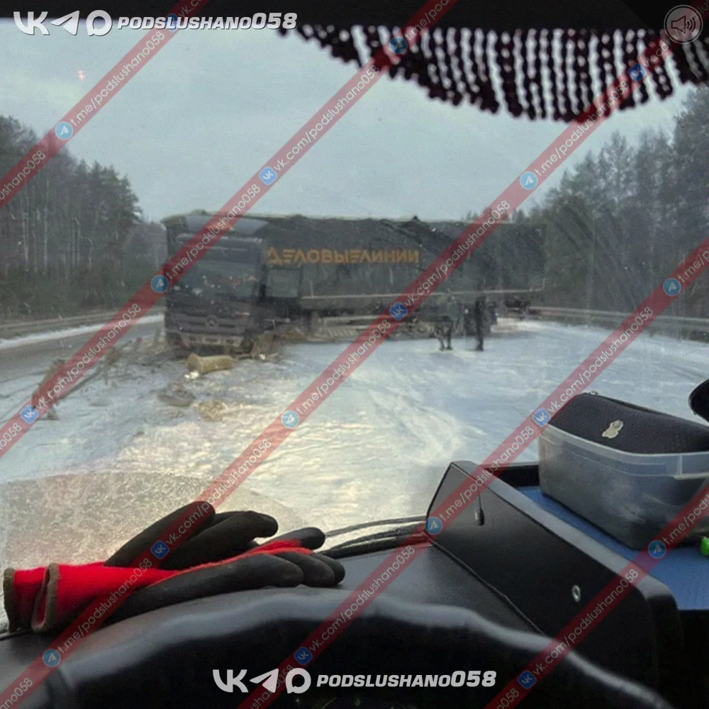 ❗️На трассе М5 в Городищенском районе фура врезалась в отбойник и перекрыла движение.