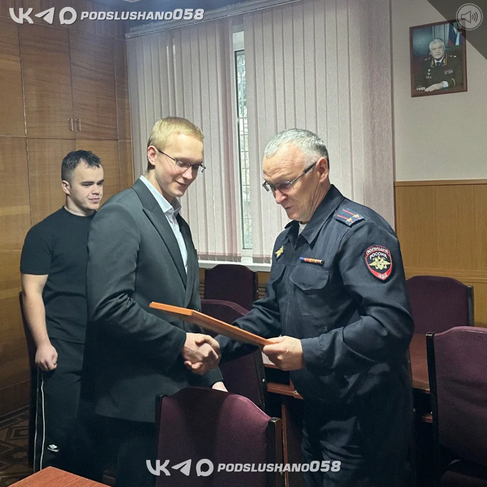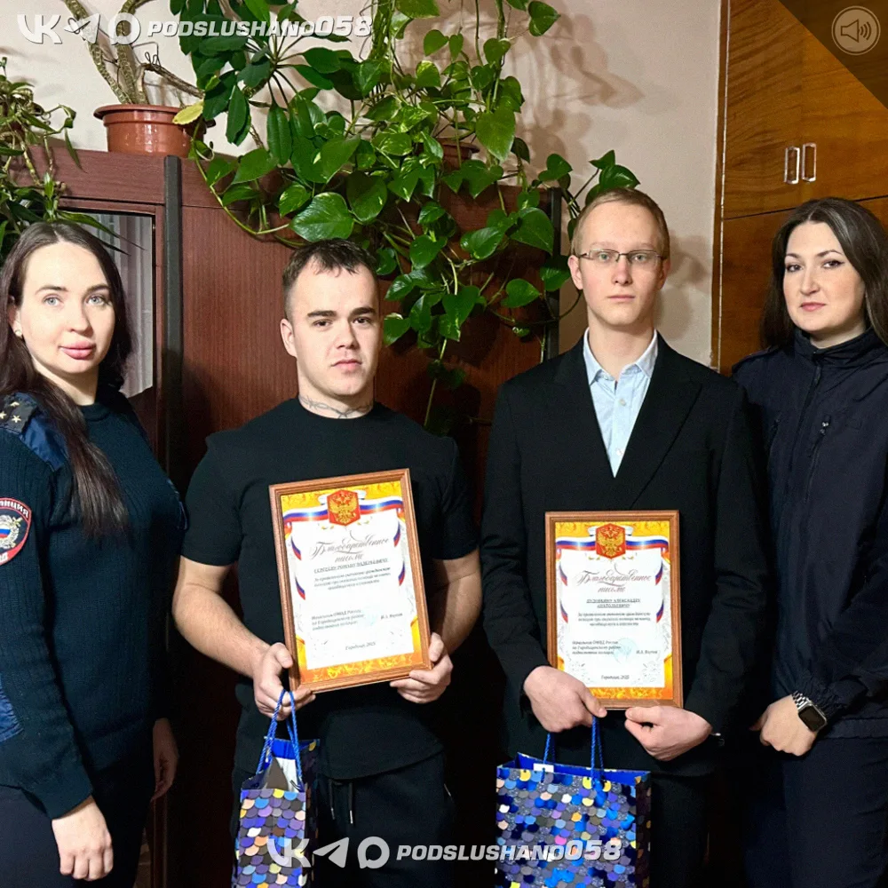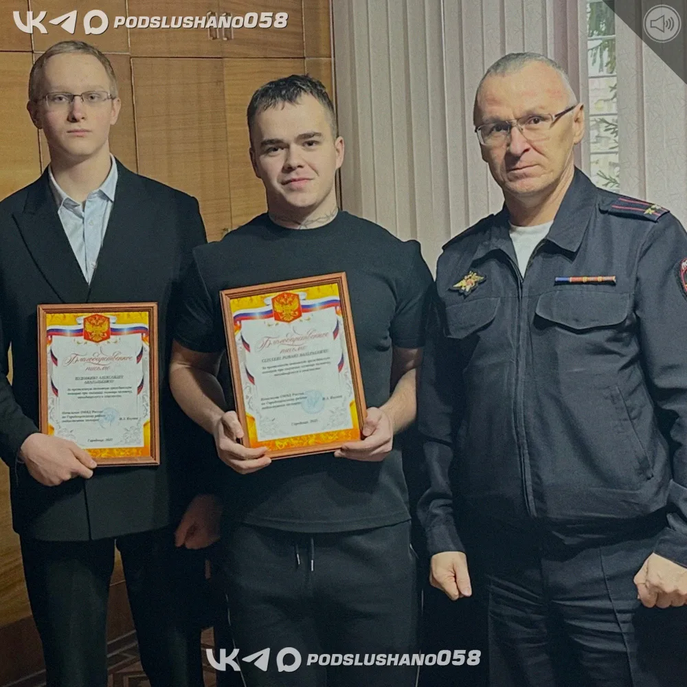 4 декабря 2025 года начальник ОМВД России по Городищенскому району Илдус Якупов вместе с сотрудниками ОПДН вручил благодарственные письма Александру Пудовкину (2008 г.р.) и Роману Сергееву (2003 г.р.) за их активную жизненную позицию и неоценимую помощь человеку, находившемуся в опасной ситуации.