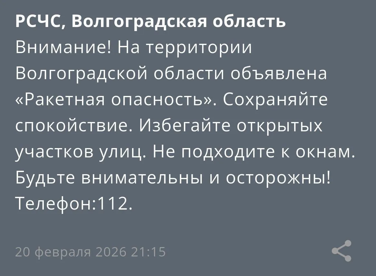 РСЧС, по Волгоградской области объявлена «Ракетная опасность»