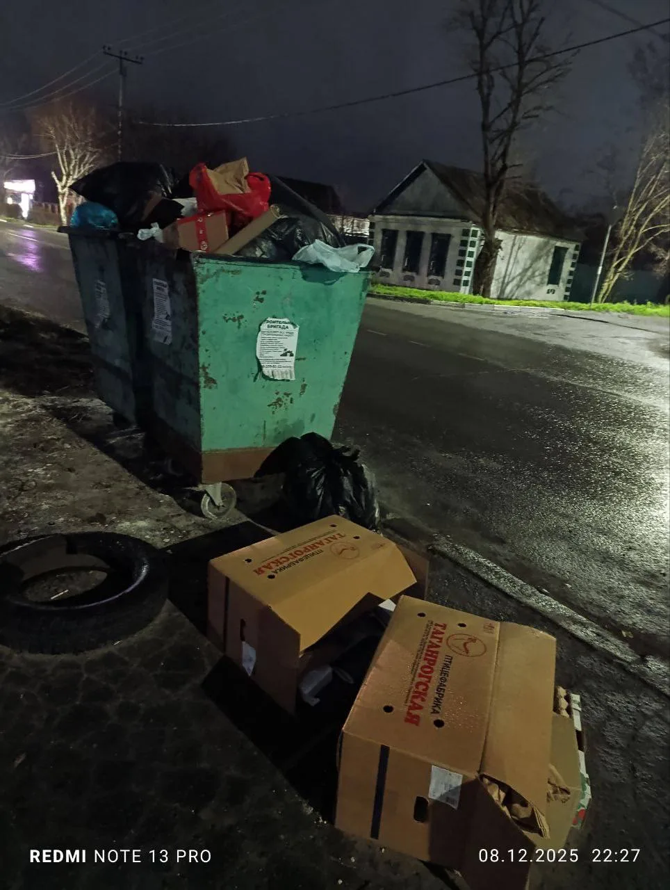 От своего магазина на пересечении улиц Ленинградская и Маяковского мусорные баки убрали, а на другом перекрёстке можно бросать .....