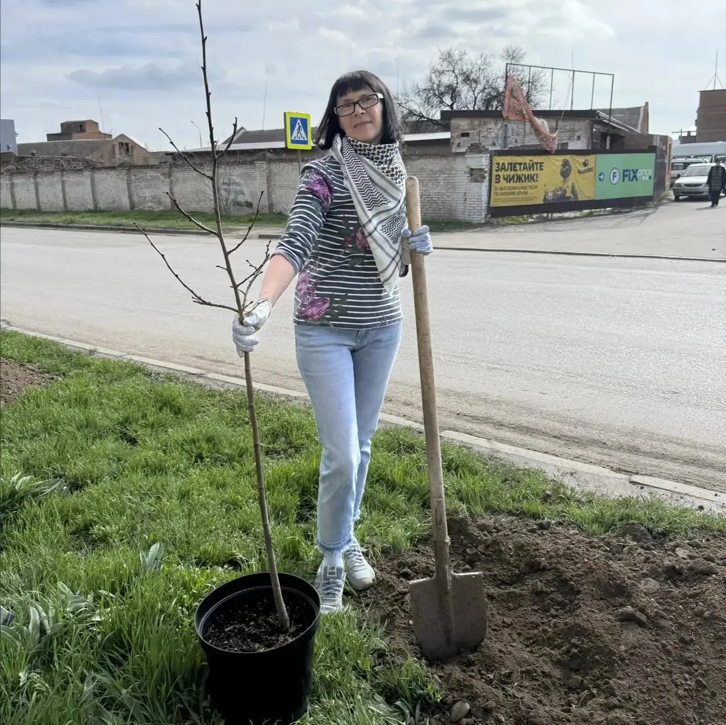 Как радостно, что в городе можно увидеть такое. Высаживают аллею лип на Кондаурова 63. Сказали, что от организации Азовшелкприз.