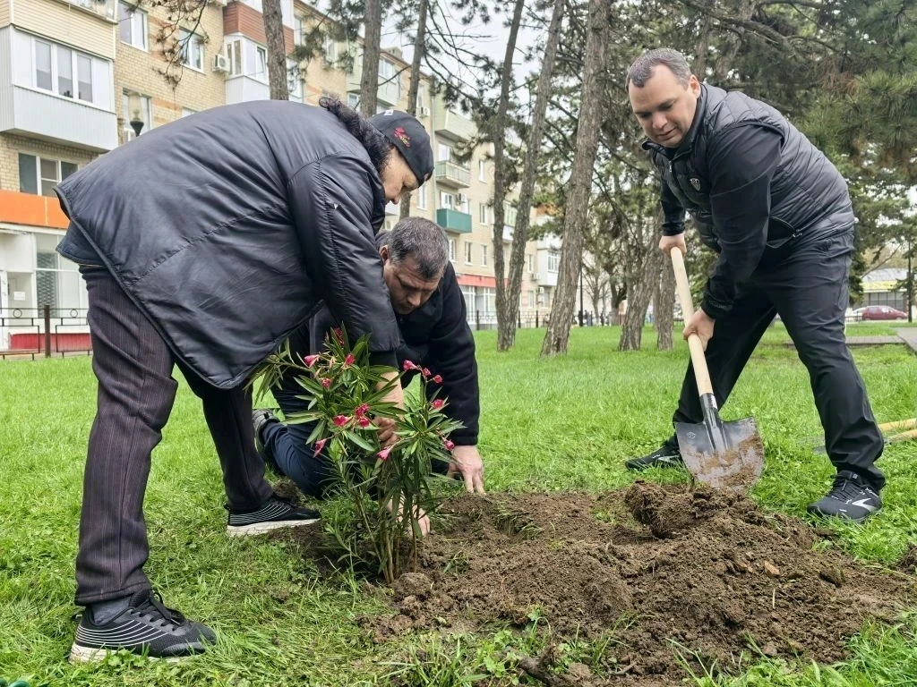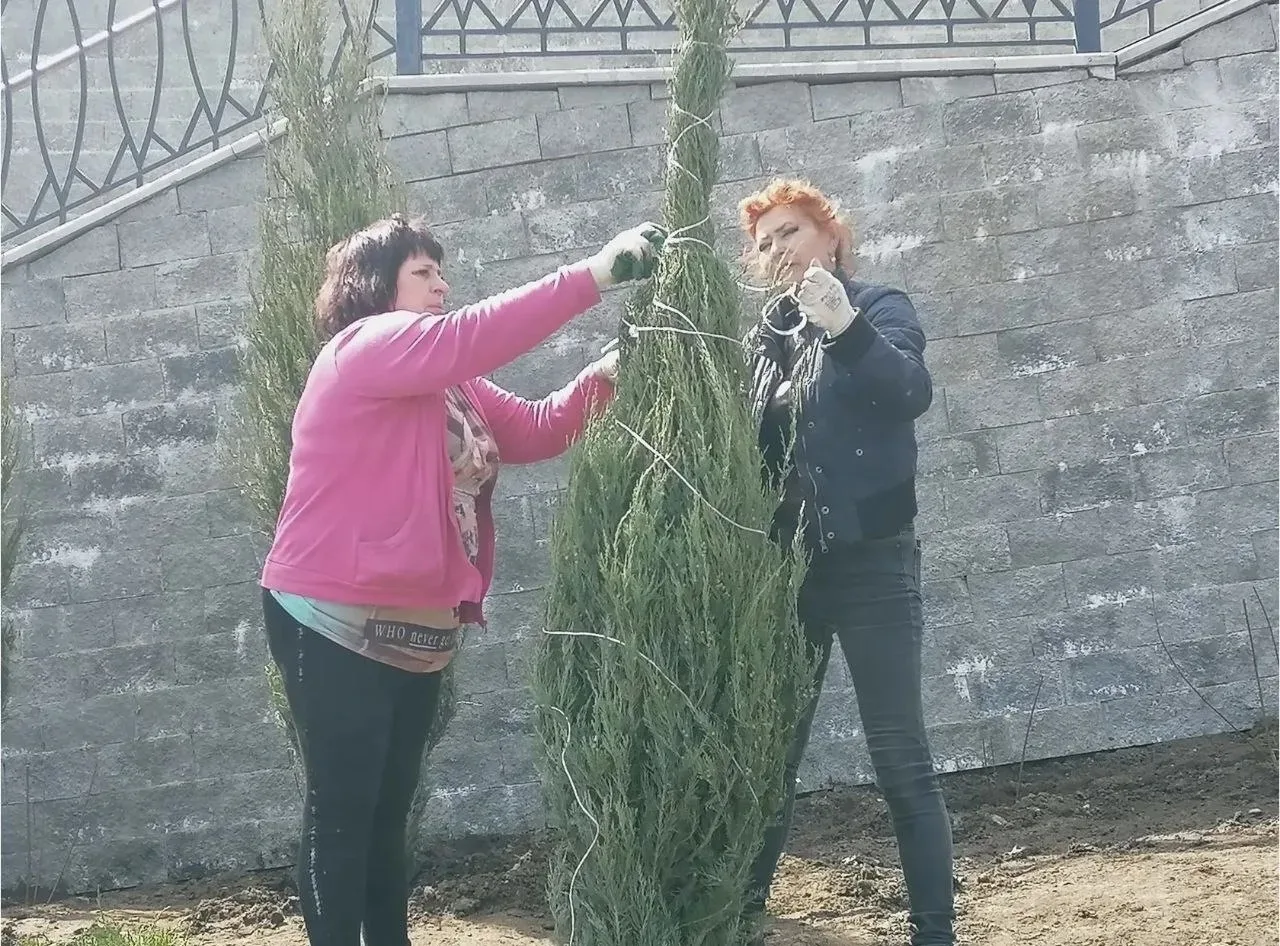 В разных частях Азова проводится высадка деревьев, кустарников, многолетних цветов.