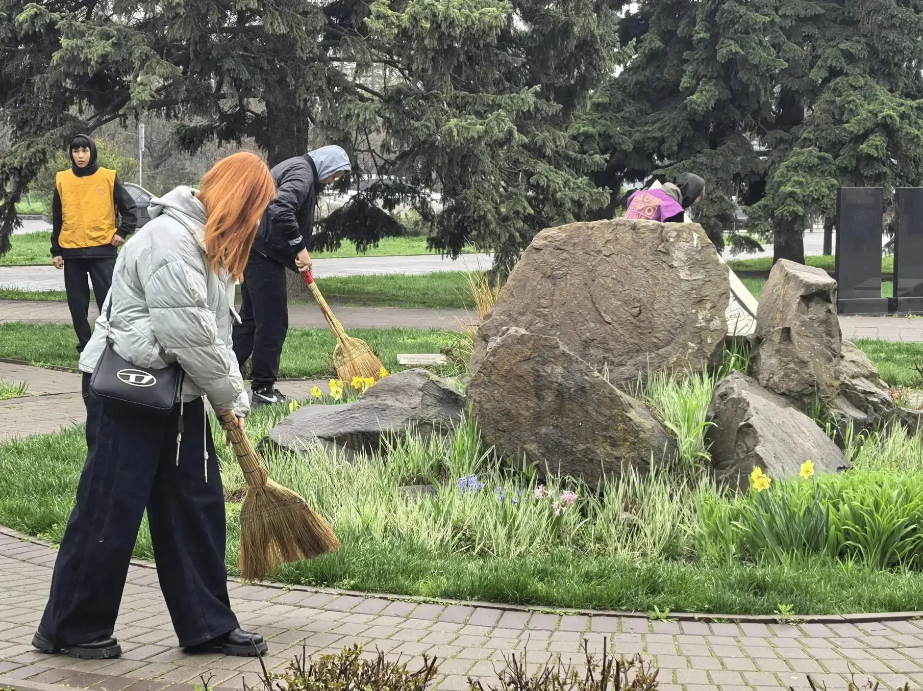 Сегодня к мемориалу на площади Победы пришли десятки молодых людей, чтобы принять участие в уборке и дополнительном озеленении этой территории.