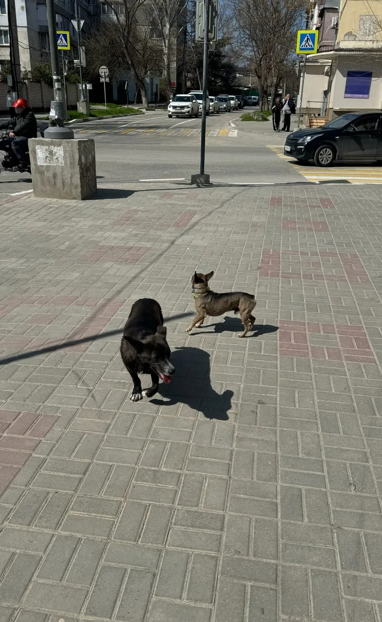 Сегодня (16 апреля) утром бегали возле магазина Тюльпан на Советской. На маленькой собачке ошейник, может кто-то узнал потеряшку.