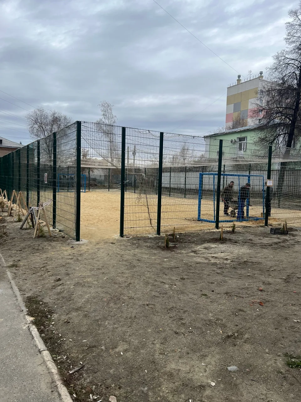 Площадку подготовили ещё в прошлом году: завезли песок, сделали ограждение. Теперь, при поддержке Копейского машзавода и депутата Ольги Лобачевой, монтируют ворота. Совсем скоро здесь можно будет гонять мяч по-настоящему👍