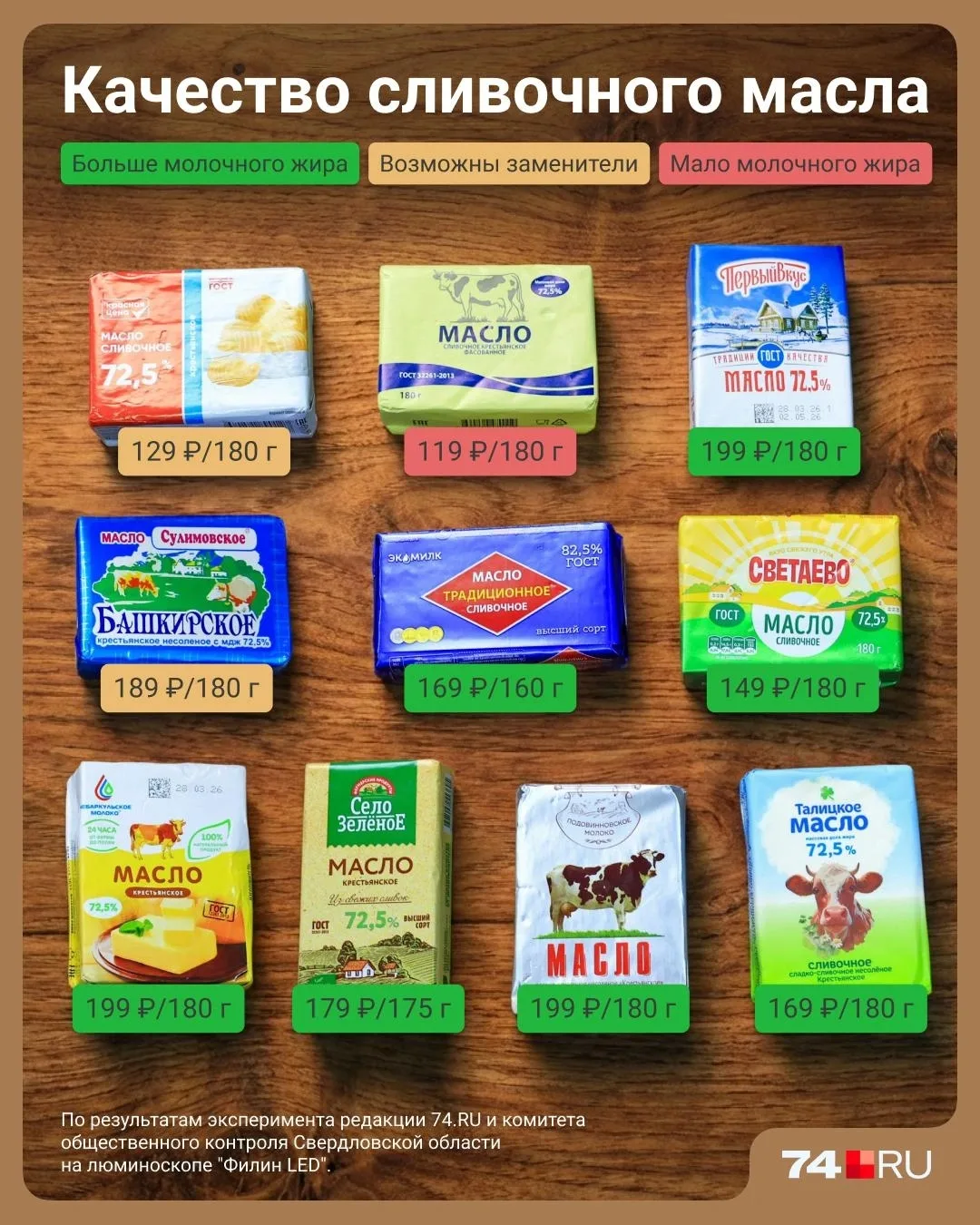 Журналисты из Челябинска купили 10 пачек сливочного масла в «Пятерочке», «Магните» и «Монетке» и проверили их с помощью люминоскопа.