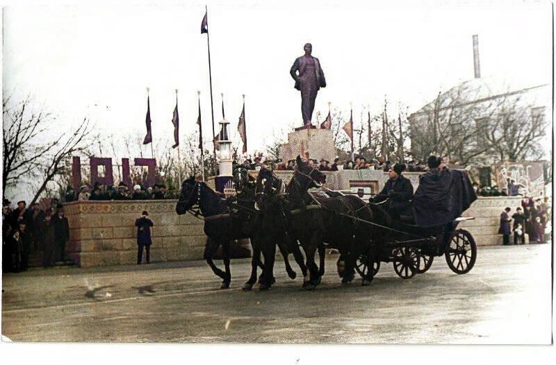 Серия фотографий демонстрации трудящихся г. Копейска в день 50-летия Великой Октябрьской Социалистической революции, 7 ноября 1967 г.