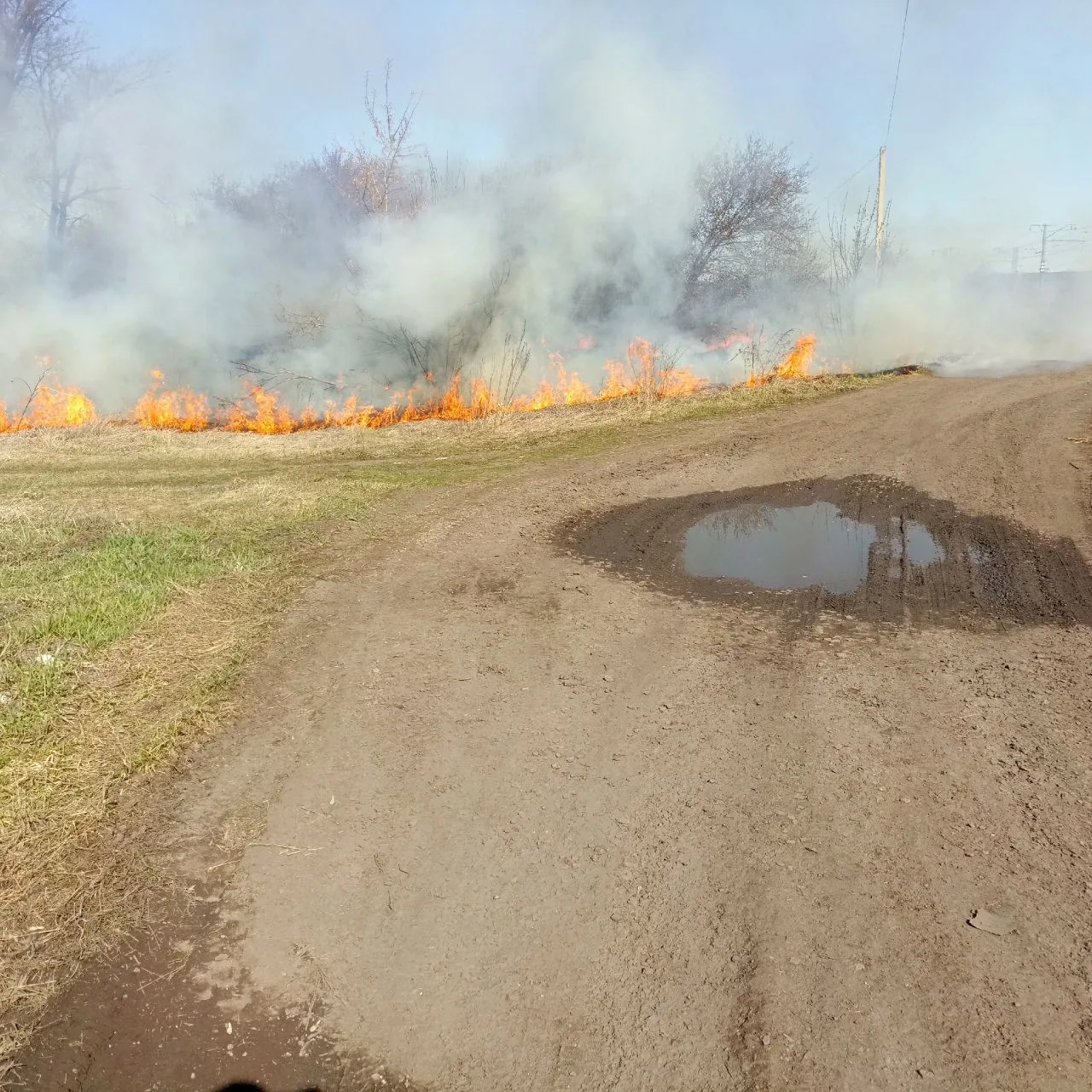 ‼️СРОЧНО‼️На козырево пожар, горят поля около школы, огонь даже около рельс!!!