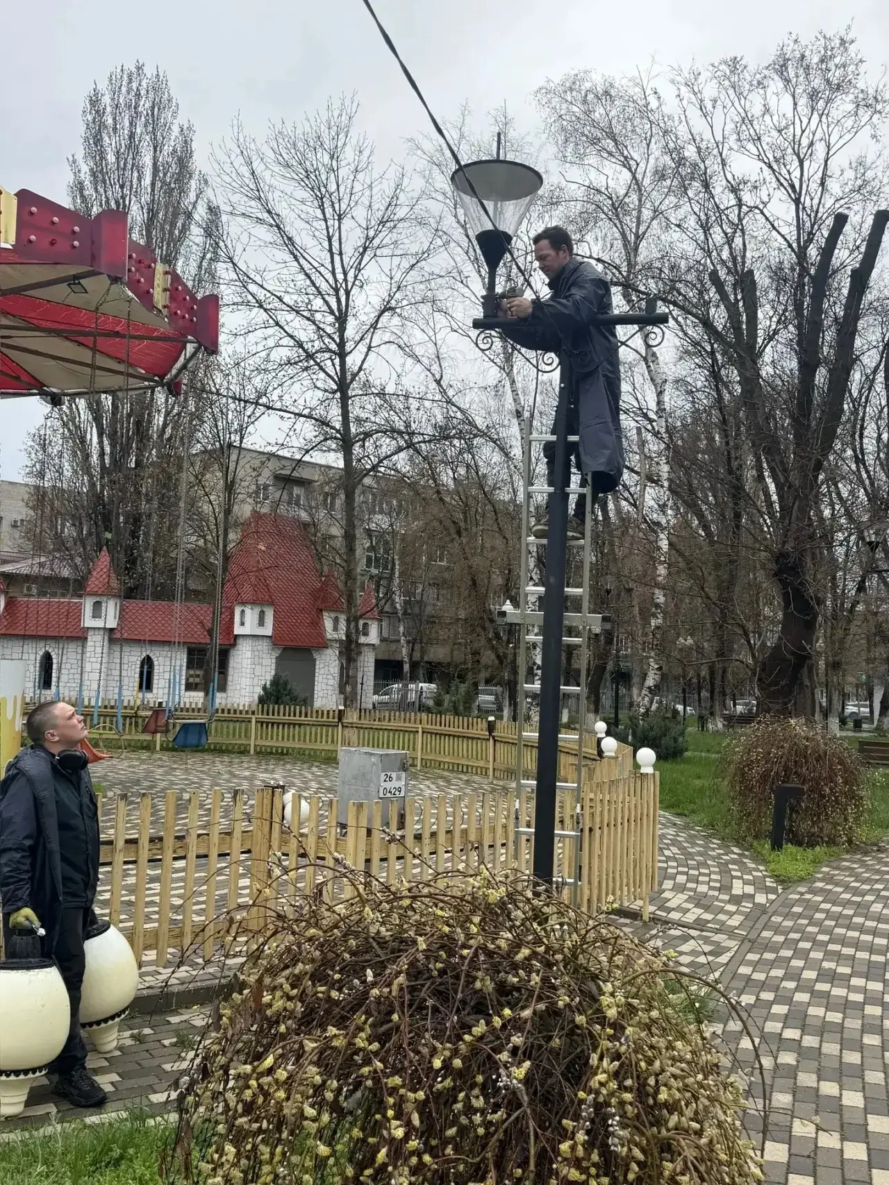 Вчера, 6 апреля на территории, прилегающей к зданию Дворца культуры Минераловодского муниципального округа, расположенного по адресу: город Минеральные Воды, проспект Карла Маркса, 64/1, произведена акарицидная (противоклещевая) обработка.