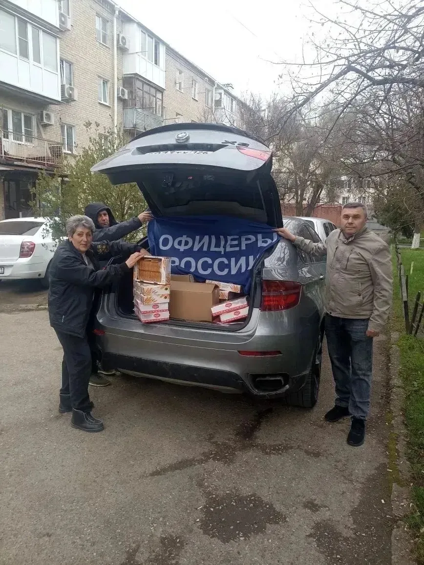 «Офицеры России» г. Минеральные Воды, в лице руководителя исполкома местного отделения Владимира Рындина, заместителя руководителя исполкома Юрия Юсупова, члена организации Алексея Разкевича и и.о руководителя исполкома регионального отделения «Офицеры России» в Ставропольском крае Александра Касмылина, доставили гуманитарный груз в волонерские центры. Волонтерскому центру «Избушка – Пушка» была оказана материальная помощь для закупки материалов, для изготовления маскировочных сетей для отправки на фронт и вручена благодарность за их сложный и нужный труд. А в волонтерский центр «Внуки, Бабули, Мамули» доставили сладости и кофе для наших бойцов на СВО, ко дню «Светлого Христова Воскресения», чтобы бойцы могли отметить этот светлый праздник. Вместе мы сила! Победа будет за нами!