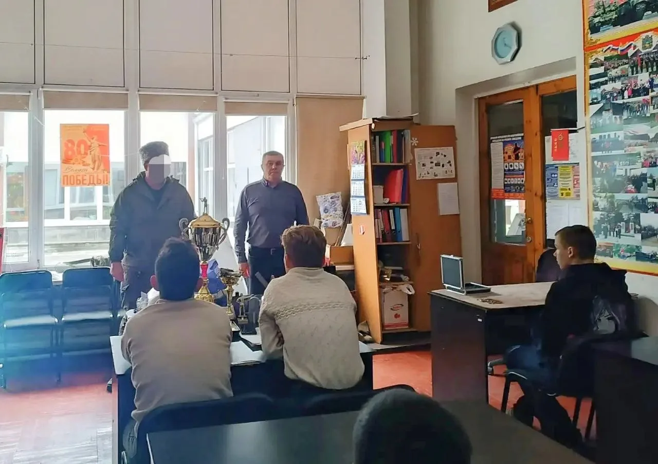 Руководитель исполкома Касмылин Александр Васильевич и член организации Проданов Алексей Николаевич. Член организации, участник СВО с позывным "Абаз" рассказал ребятам о пластунах героев СВО Терского казачьего войска. Этот день посвящен защитникам и труженикам, патриотам нашей страны всех поколений. Тем, кто оружием в руках или в мирном труде совершает поступок, который приносит Родине победу и остается в истории навсегда.