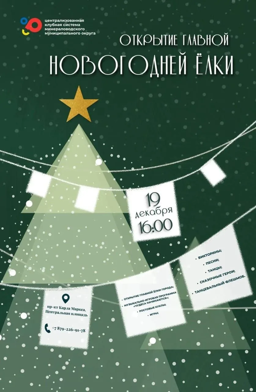 Открытие главной новогодней ёлки в Минеральных Водах состоится в пятницу, 19 декабря в 16:00.