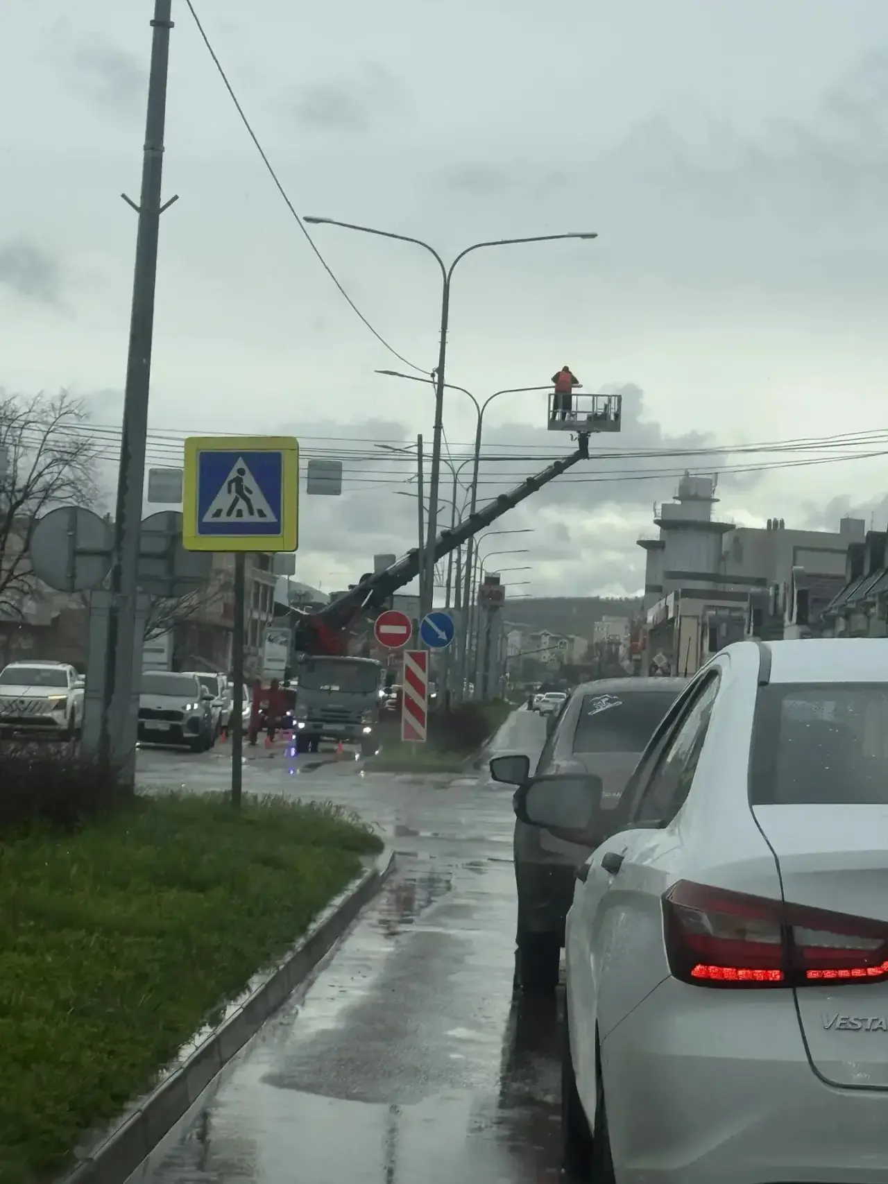 В Минеральных Водах всё по фэншую: дождик идёт, асфальт кладут.. В лучших традициях.