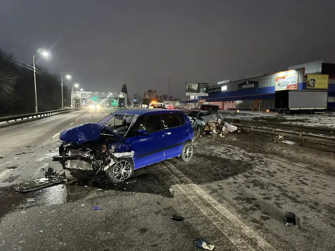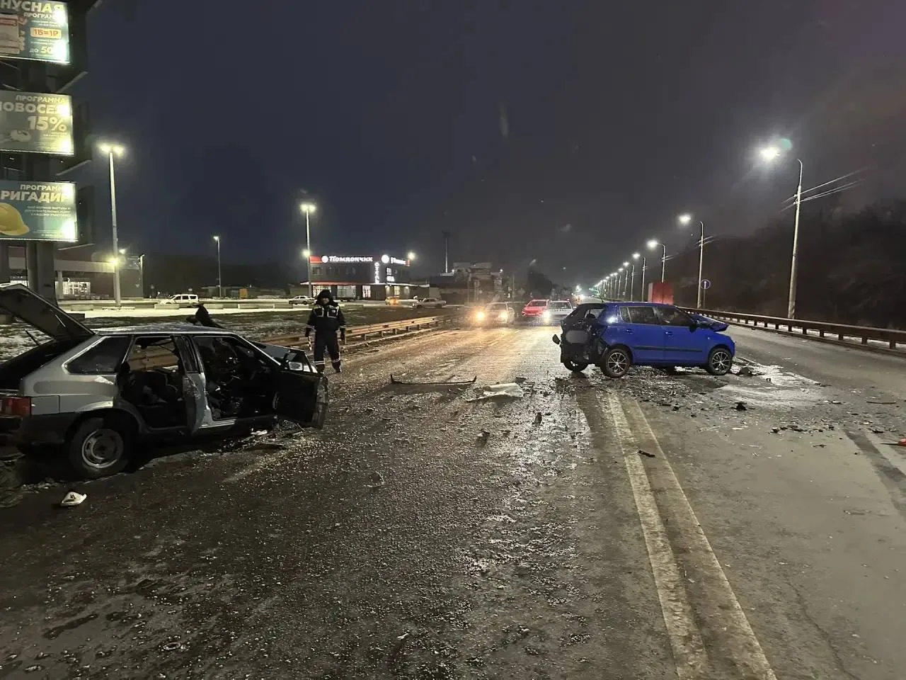 Сегодня утром водитель автомобиля ВАЗ-2109 выехал на встречку, где столкнулся с двумя другими машинами — «Шкодой» и «Хендаем».
