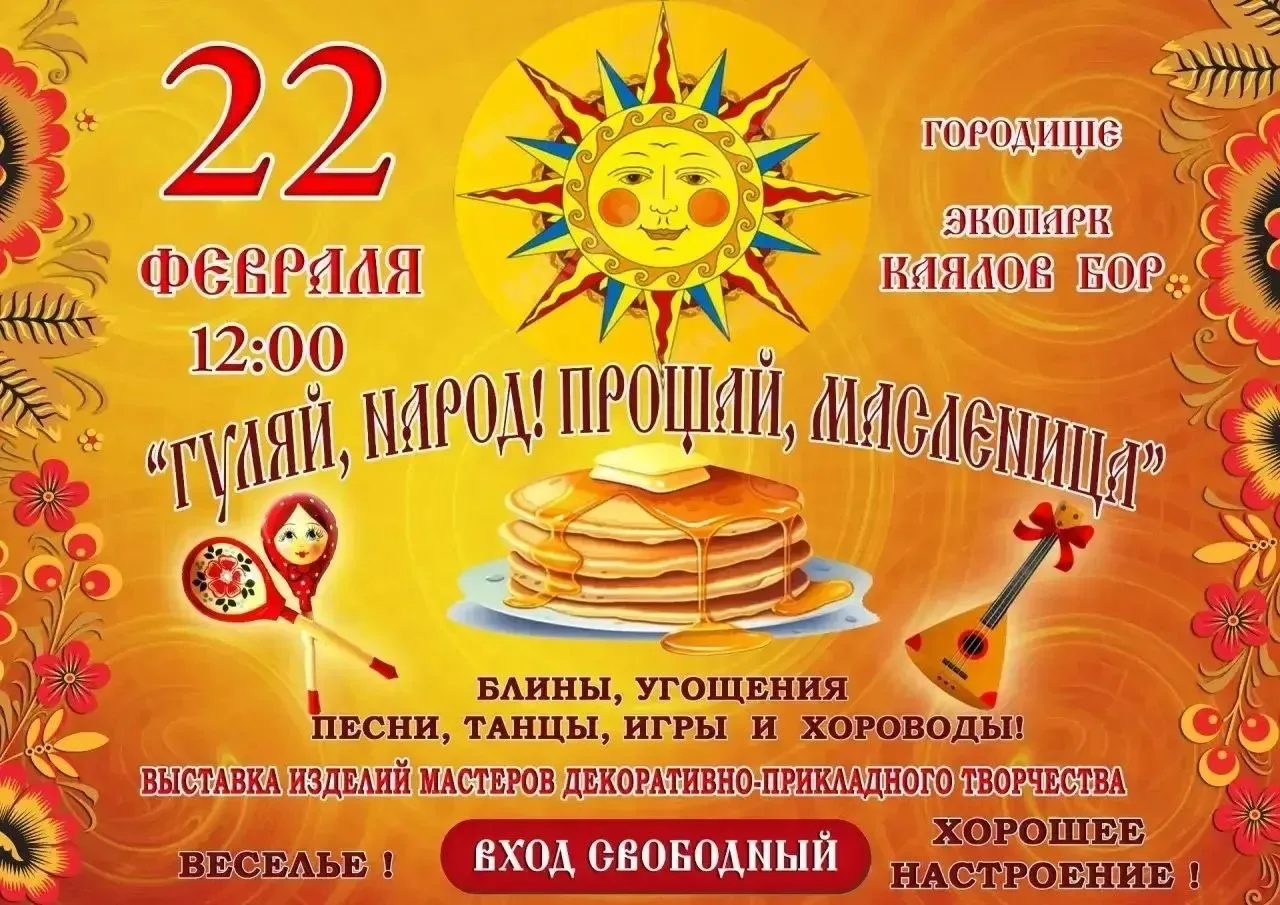 Блины, хороводы, песни и танцы в лучших народных традициях ждут вас 22 февраля в 12:00 в Городище экопарка «Каялов бор», вход свободный.