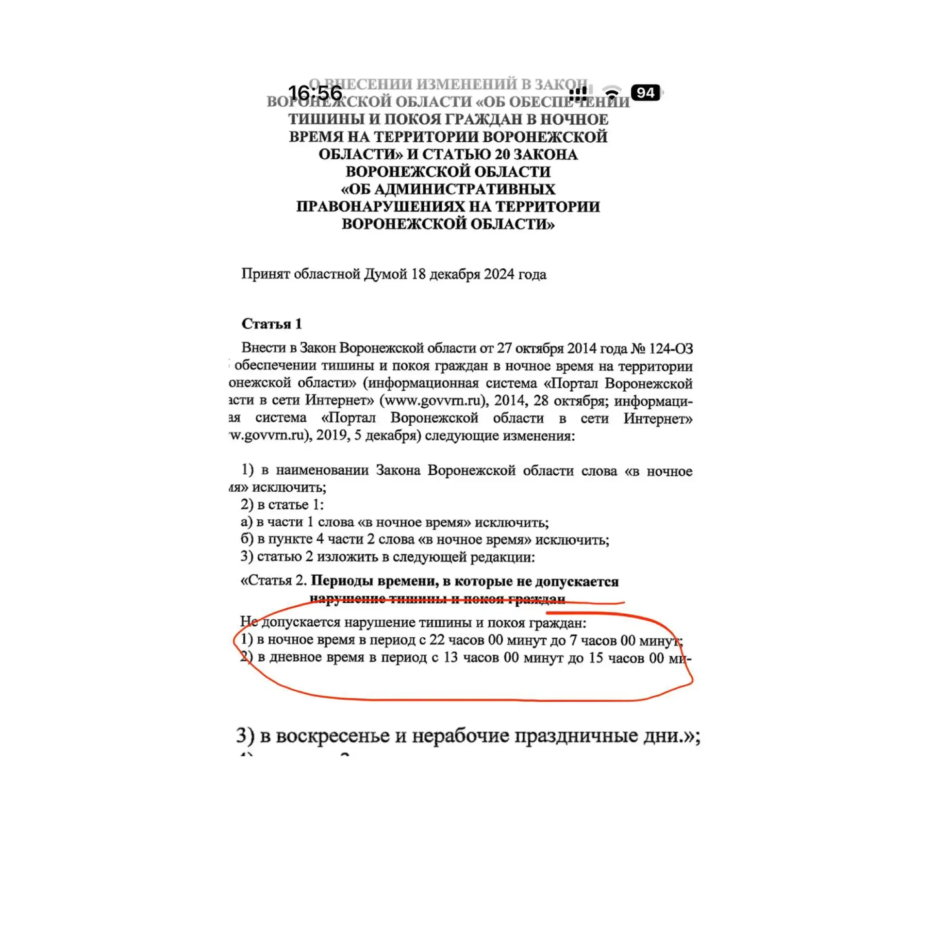 Закон о тишине в Воронежской области