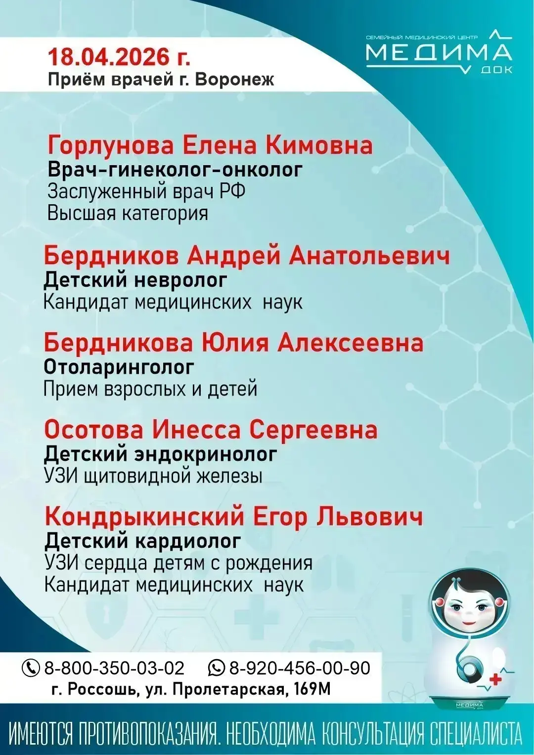 🔊 ВЕДЁТСЯ ЗАПИСЬ‼️ Врачи из Воронежа в медцентре МедимаDoc (г. Россошь, ул. Пролетарская, 169 М).