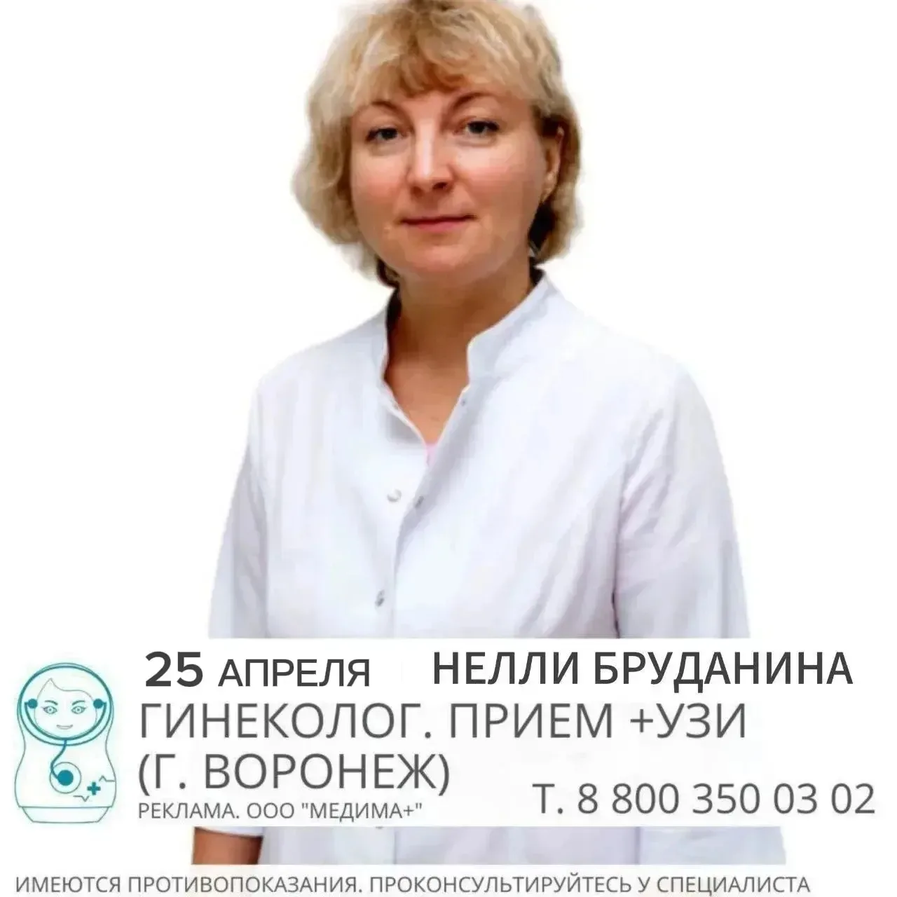 25 АПРЕЛЯ в нашем медцентре проведет прием НЕЛЛИ БРУДАНИНА - врач гинеколог, акушер, врач УЗИ (г. ВОРОНЕЖ).
