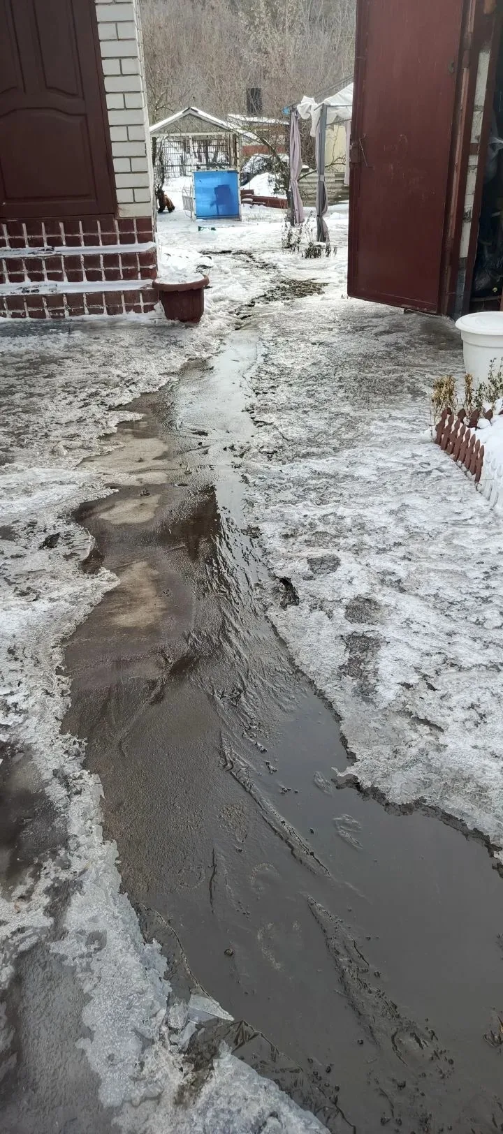 Второй день приносит трудности после аварии, а именно: отвратительный запах во дворе и гараже; наледь у калитки практически не даёт открыть ее без усилий. Все это влияет и ухудшает качество жизни, хотя вины хозяев этого дома абсолютно нет! В администрацию города обращение написали, но считаем что такая ситуация должна быть предана огласке максимально.