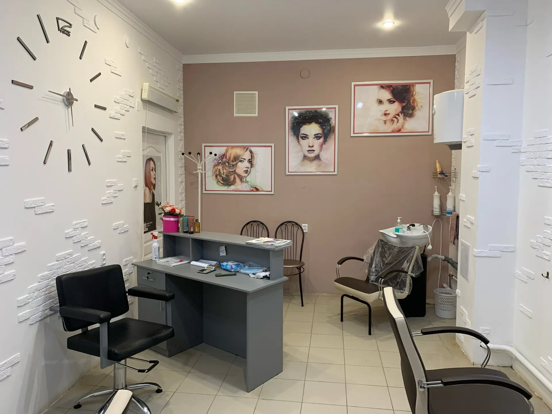 В парикмахерской имеется все для комфортной работы , также имеется зона отдыха-зона обеда.