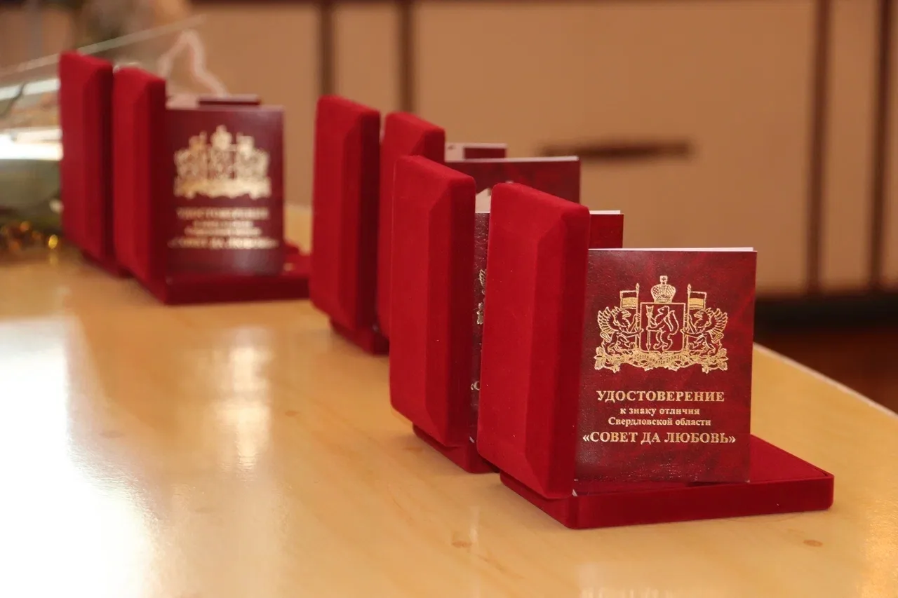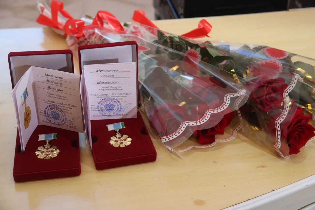 Вчера в ЗАГСе Лесного чествовали три семейные пары. Галине и Владимиру Мельниковым, Вере и Валерию Никитиным, Надежде и Аврамию Смирновым вручили знаки отличия Свердловской области «Совет да любовь».
