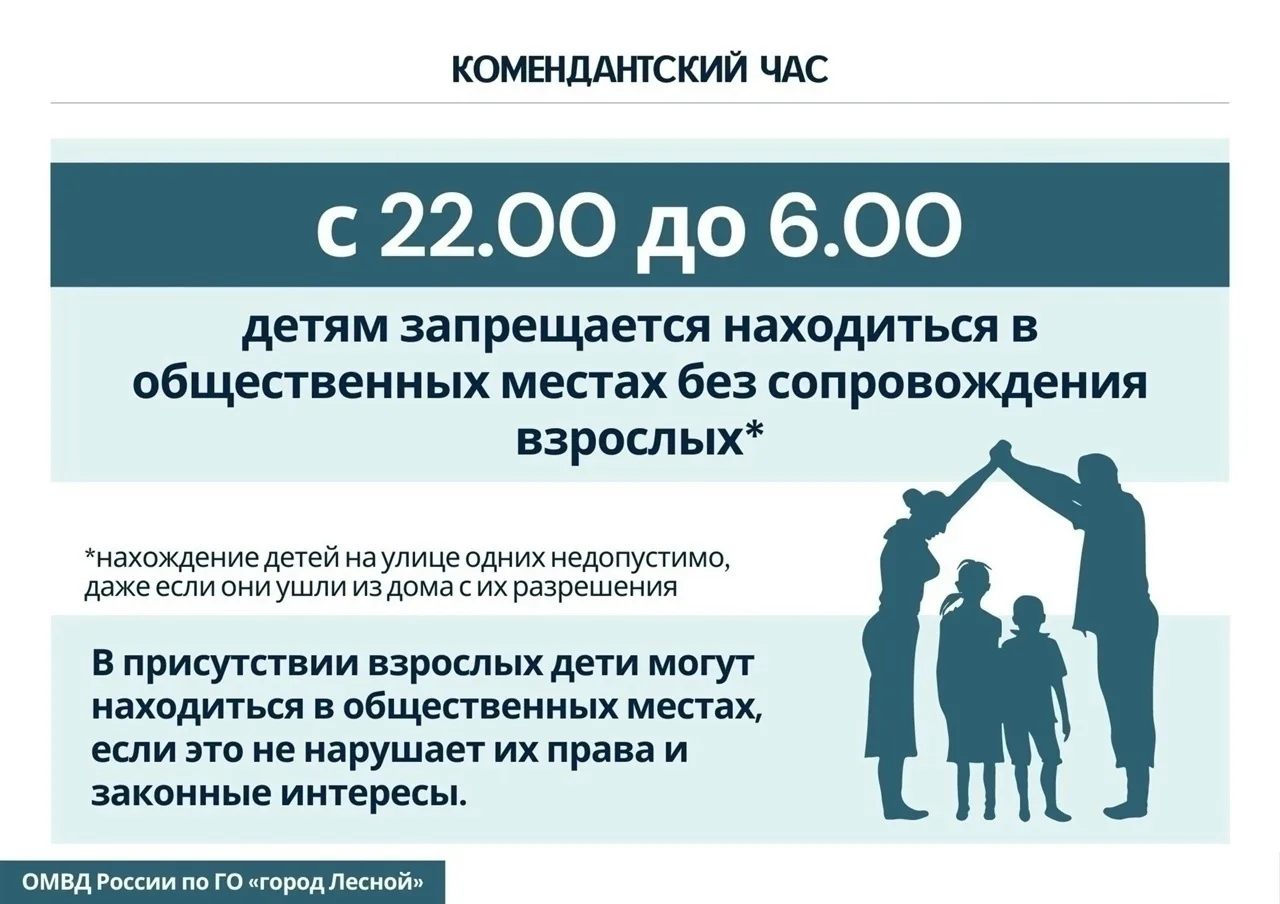 Правоохранители напоминают, что он начинается в 22.00 и продолжается до 6.00. В это время несовершеннолетним запрещается находиться на улице и в общественных местах без сопровождения взрослых. За нарушение комендантского часа предусмотрена административная ответственность.