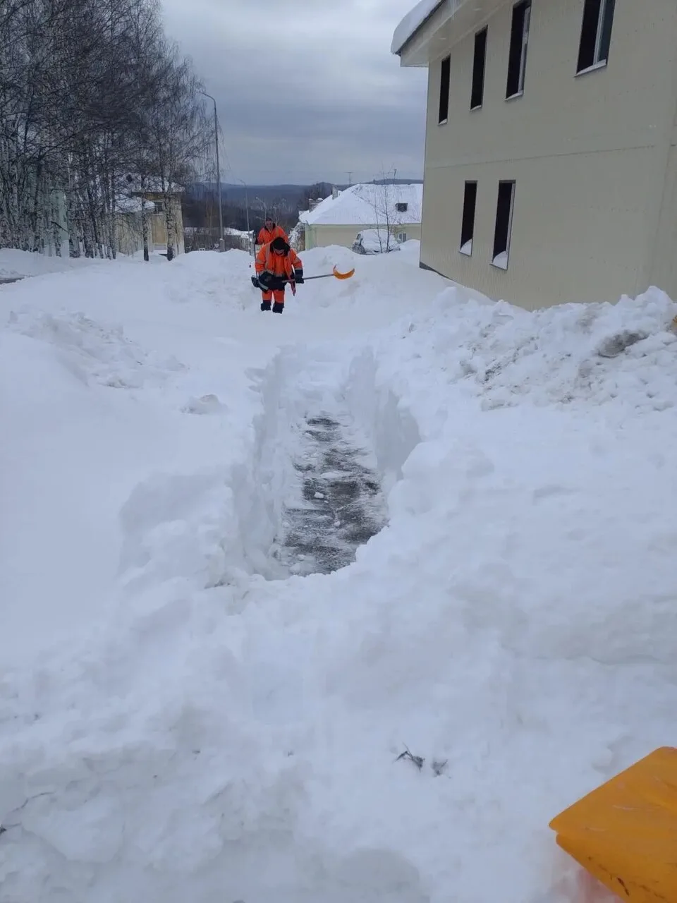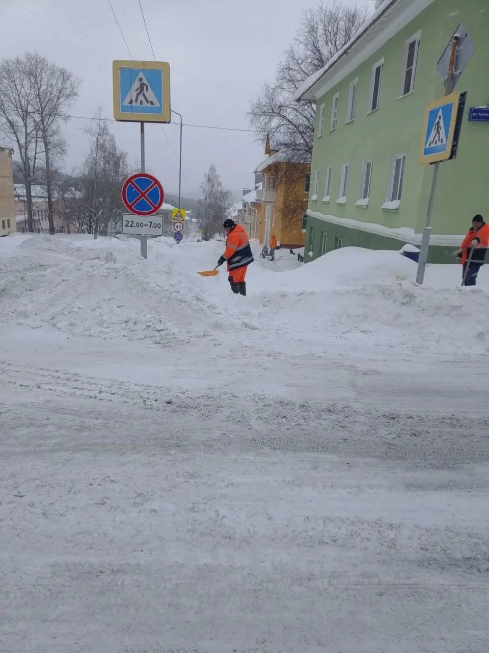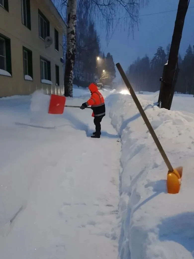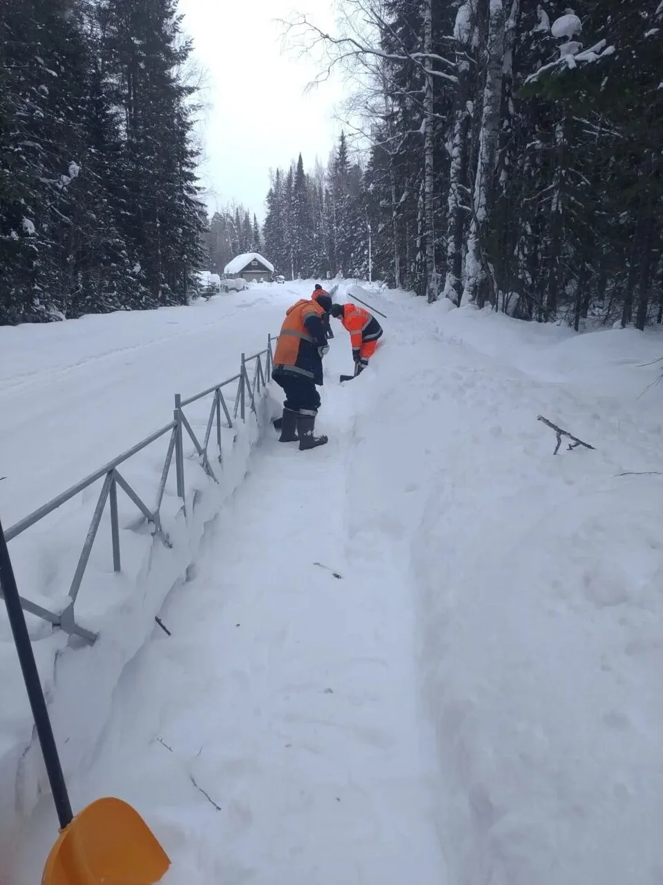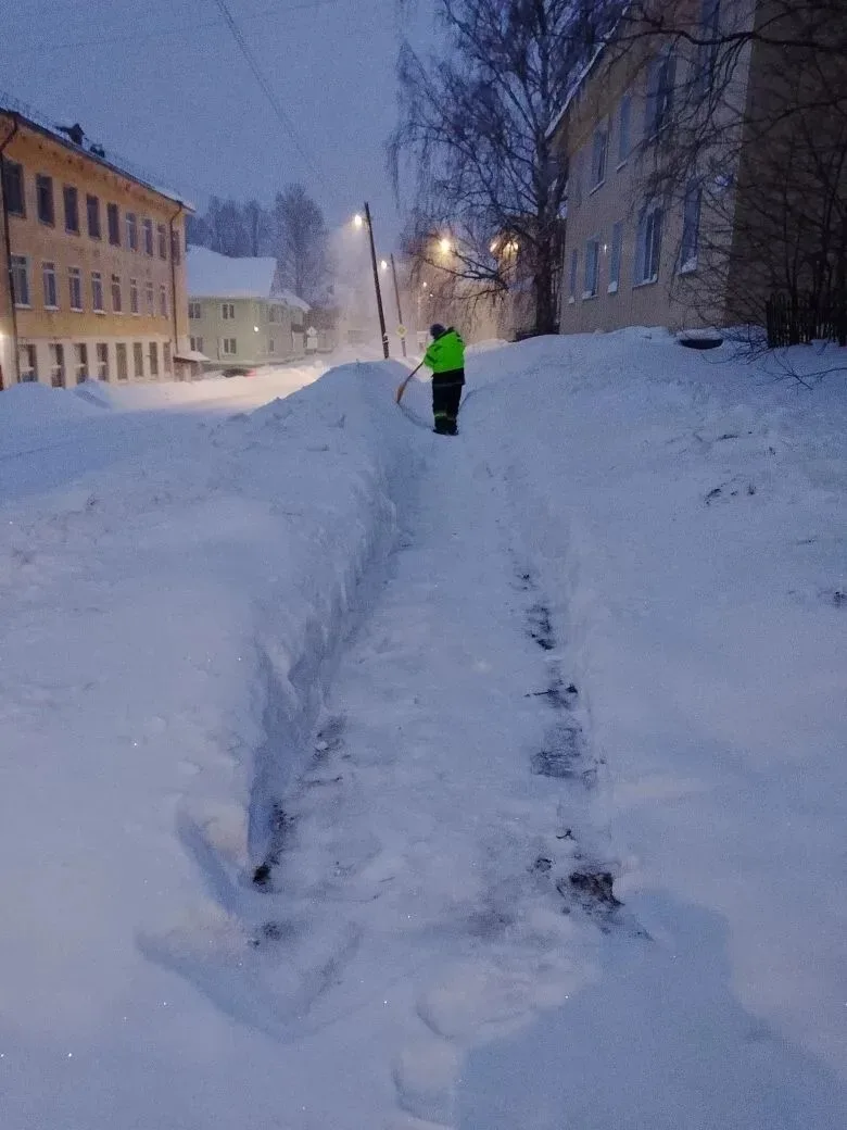 Продолжается ручная очистка тротуаров в посёлке Горный, в районе Залесья