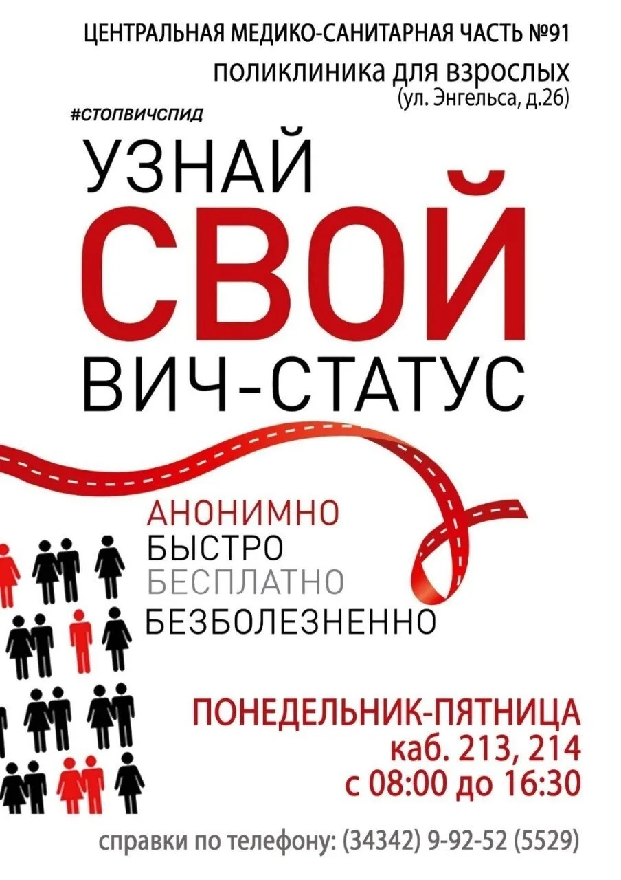 Напомним, что определить свой ВИЧ-статус анонимно можно в поликлинике для взрослых в каб. 213 с 08.30 до 16.30 (перерыв с 13.00 до 14.00). А также для сотрудников комбината в здравпунктах.
