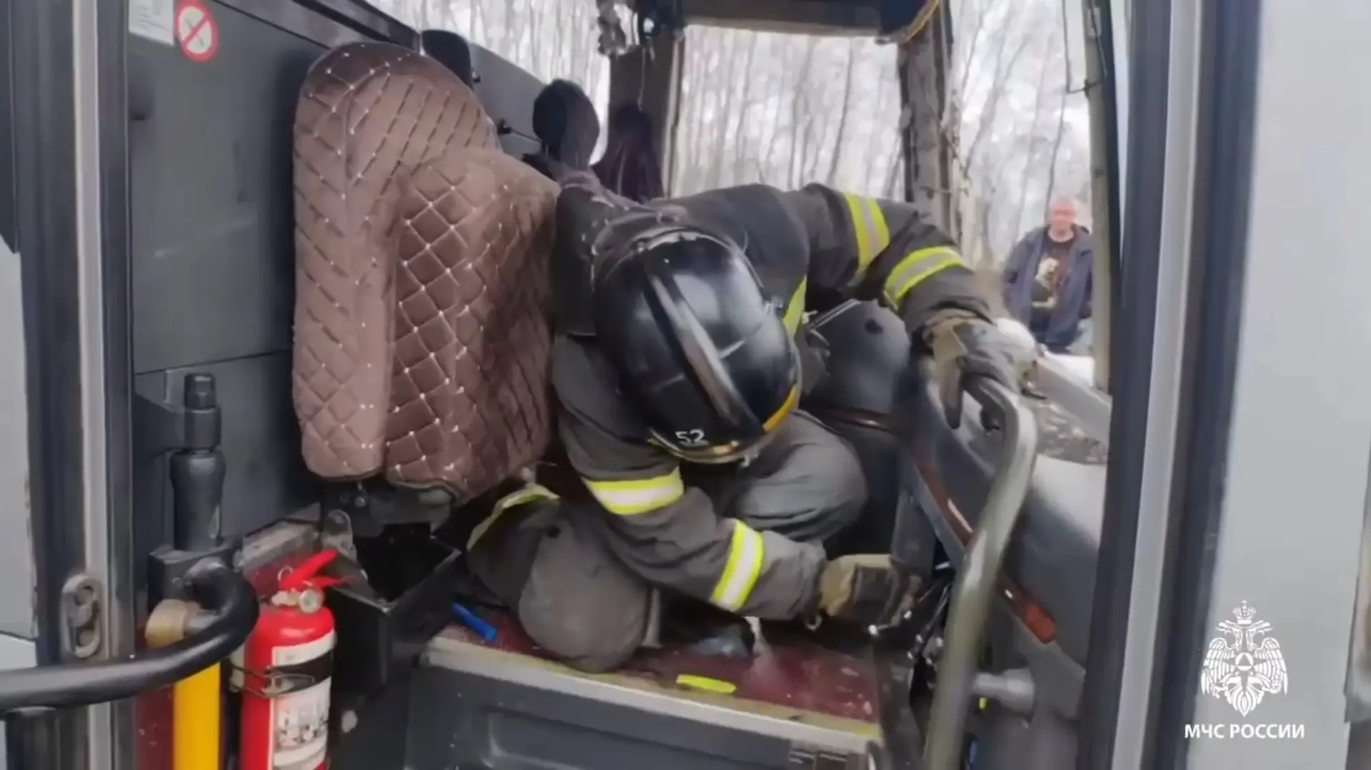 По информации УГИБДД, автобус Hyundai перевернулся в 9:53. Предварительно, 53-летнему водителю стало плохо за рулём. Мужчина погиб.