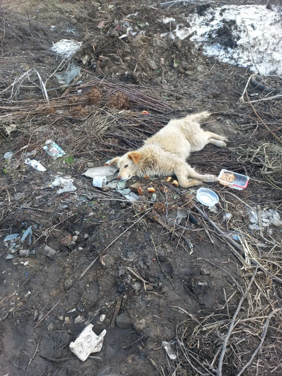 За элеватором по улице Димитрова возле мусорных кантейнеров уже второй день лежит собака ,ОНА ЖИВАЯ но двигаться не может сосвем .Предпологаю что её сбили и отволокли к мусорке.