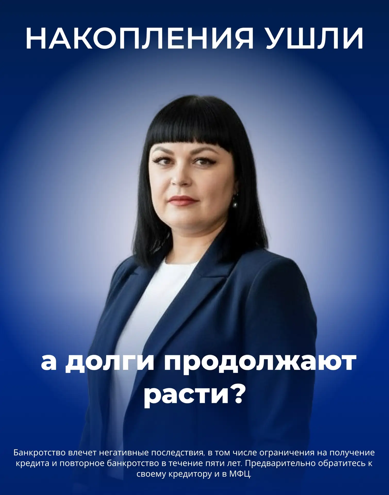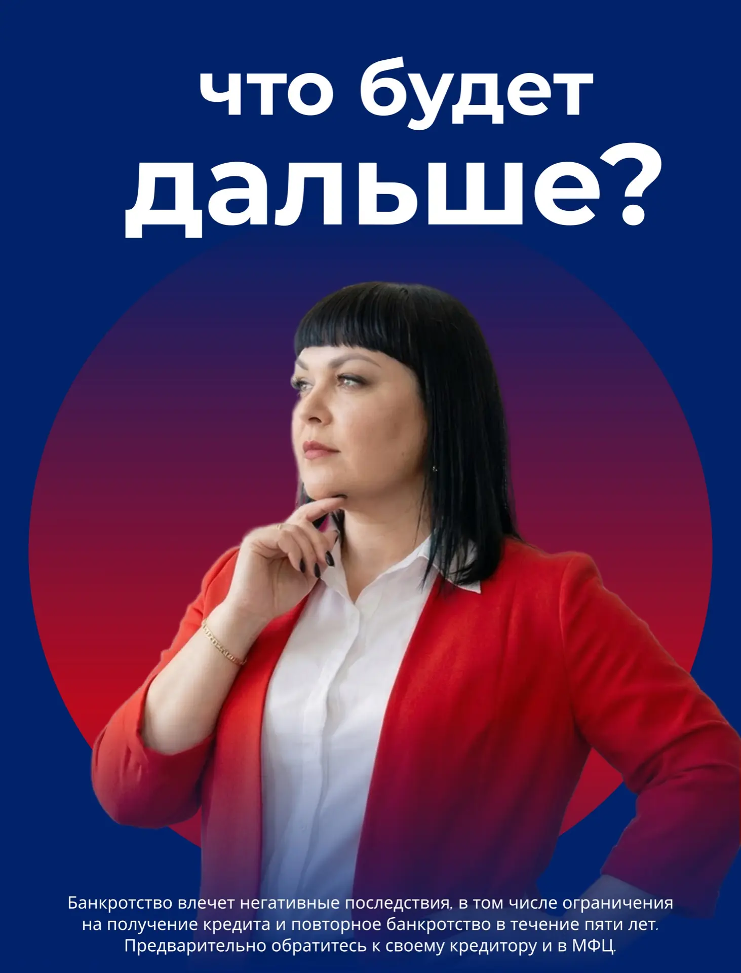 *Банкротство влечет негативные последствия, в том числе ограничения на получение кредита и повторное банкротство в течение пяти лет. Предварительно обратитесь к своему кредитору и в МФЦ.