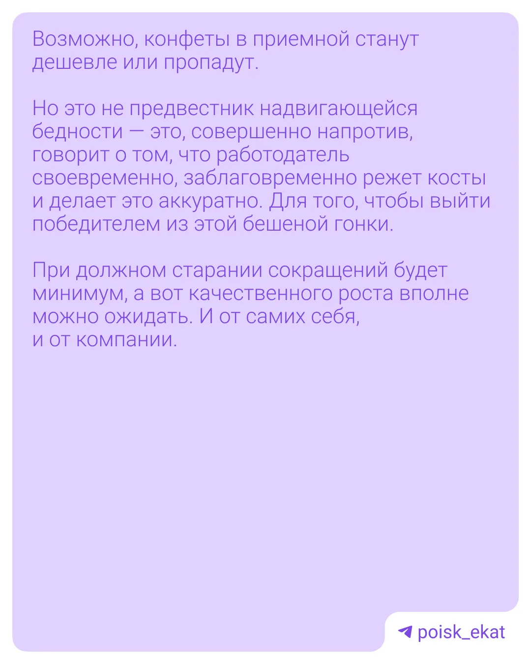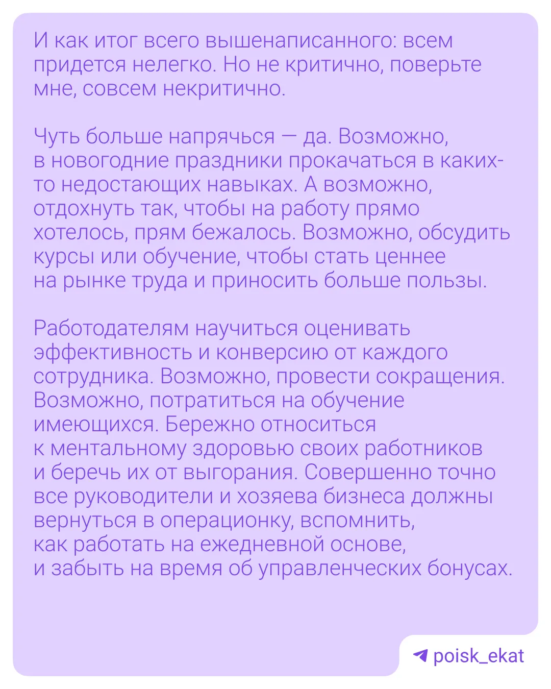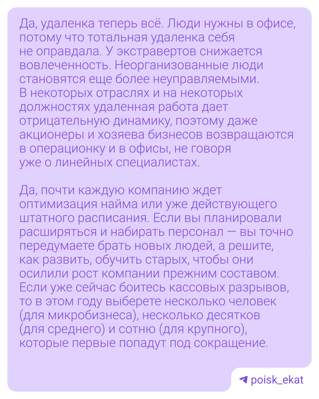 HR-директор из Екатеринбурга Ольга Новгородова рассказала, действительно ли нас ждут массовые сокращения и чего ждать от рынка труда в следующем году. Ее мнение от первого лица в карточках.