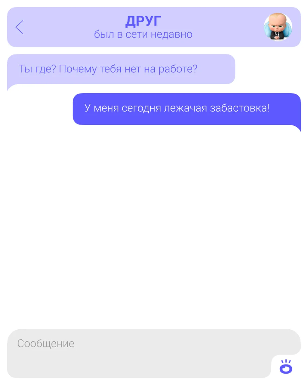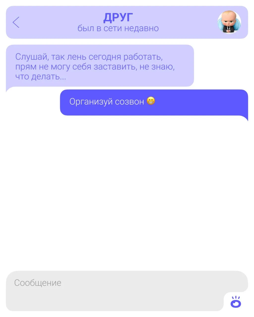 Я: извини, я не смогу сегодня встретиться, очень много дел на этих выходных.