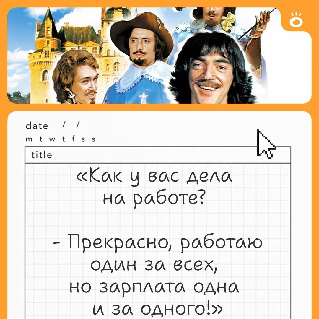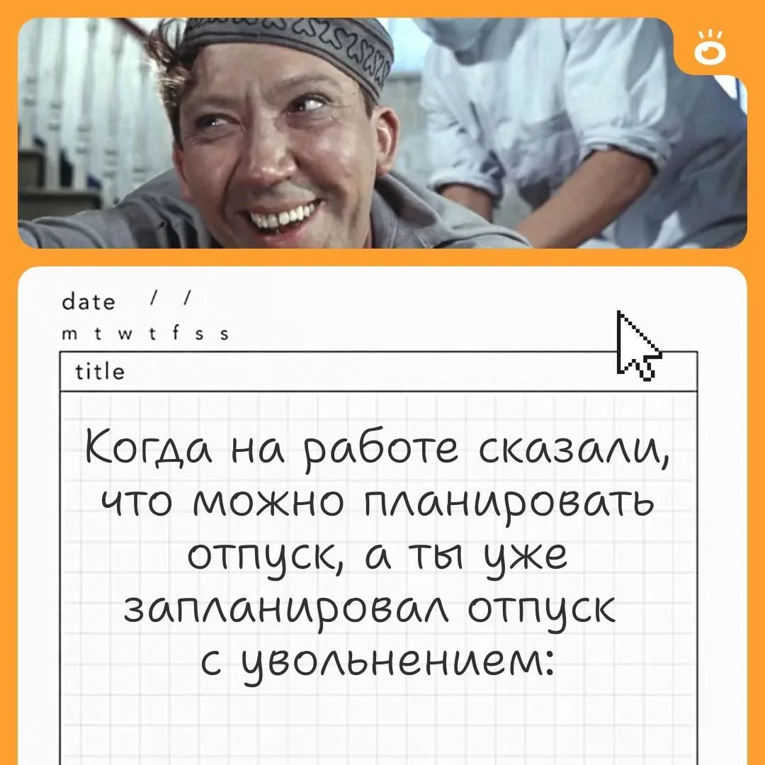 Мы решили модернизировать классику и собрали смешные фразы, которые основаны на советском кинематографе. А также подобрали кадры, которые отлично описывают трудовое настроение.