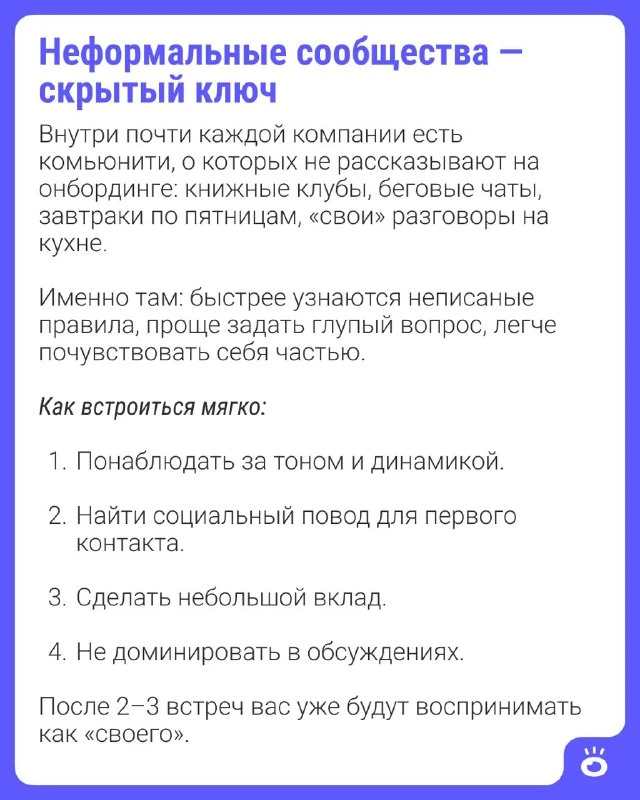 А если формат гибридный или удалённый — шансов на случайные разговоры у кулера просто нет, и человек остаётся один на один со своими тревогами.