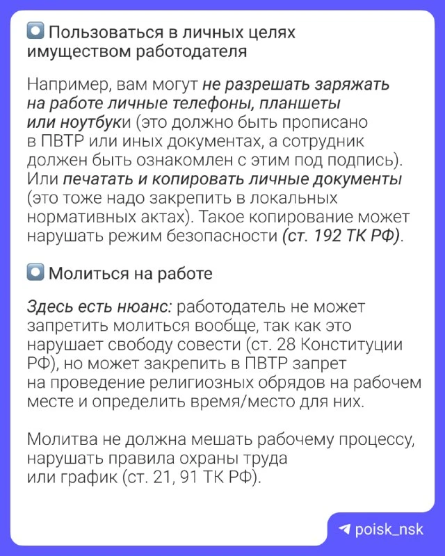 Логично, что руководитель может не разрешать своим сотрудникам уходить с работы раньше окончания рабочего дня или приводить в офис детей, но есть и не совсем очевидные запреты. Какие? Смотрите на карточке!