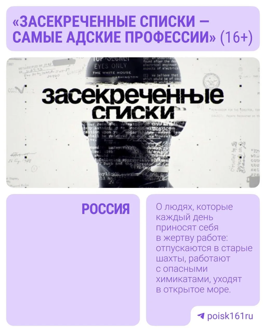 Собрали документальные фильмы о тех, кто выбрал самые тяжёлые пути: от спасателей и шахтёров до врачей и военных.
