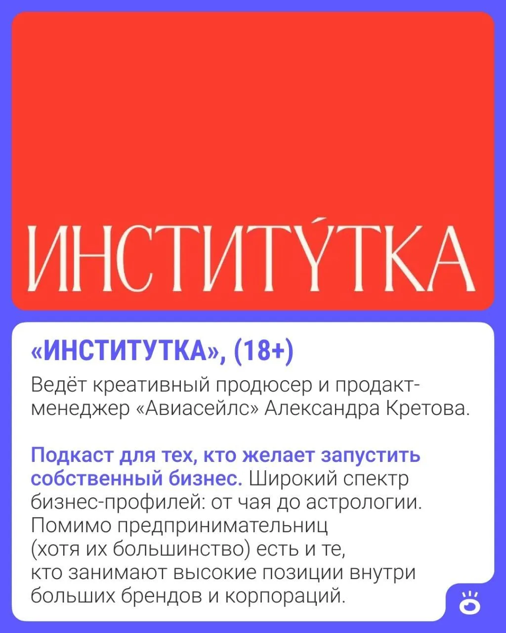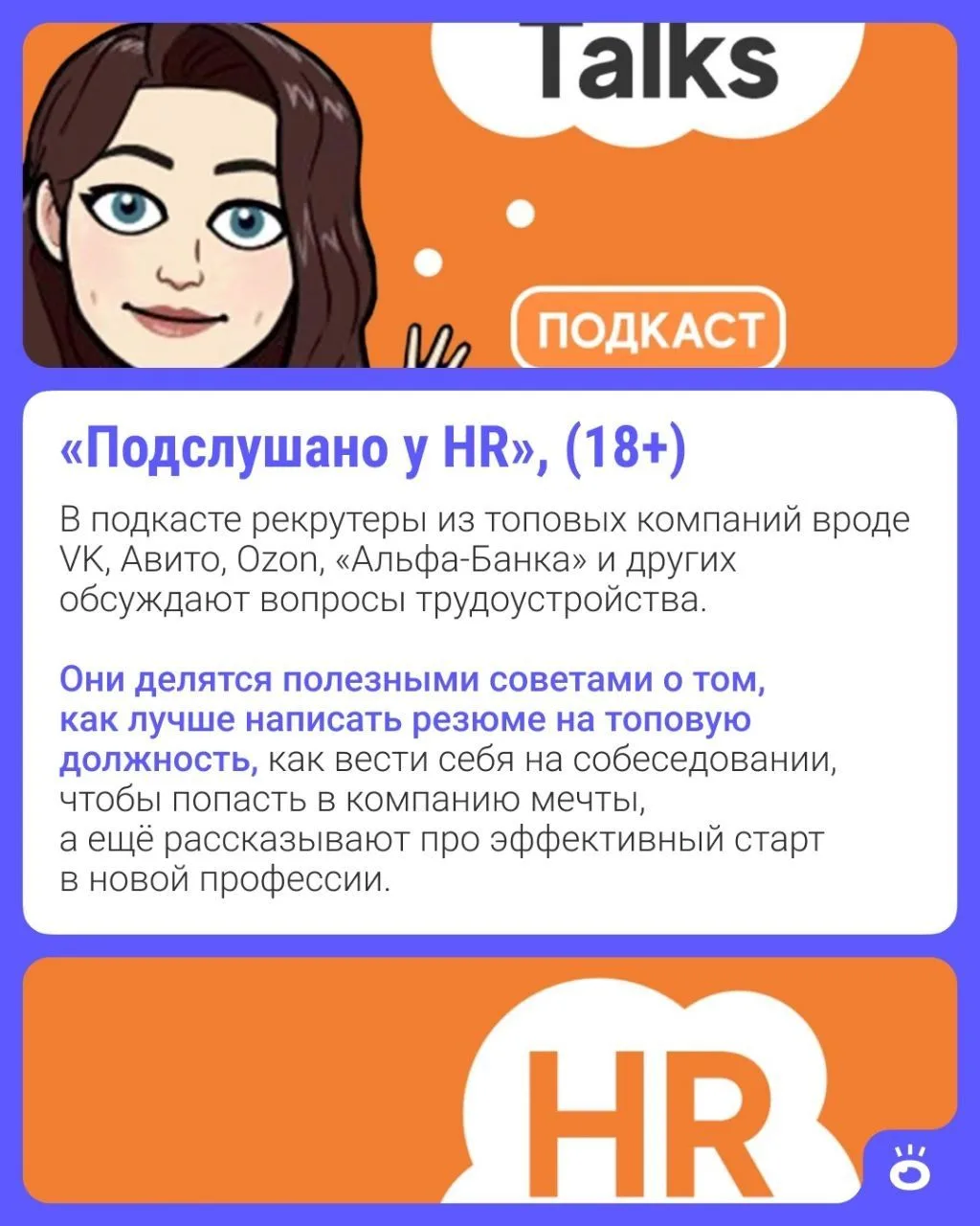 Работайте и одновременно слушаете о том, как запустить свой бизнес, справиться с эмоциональным выгоранием и успешно совмещать личную жизнь и карьеру 🍿