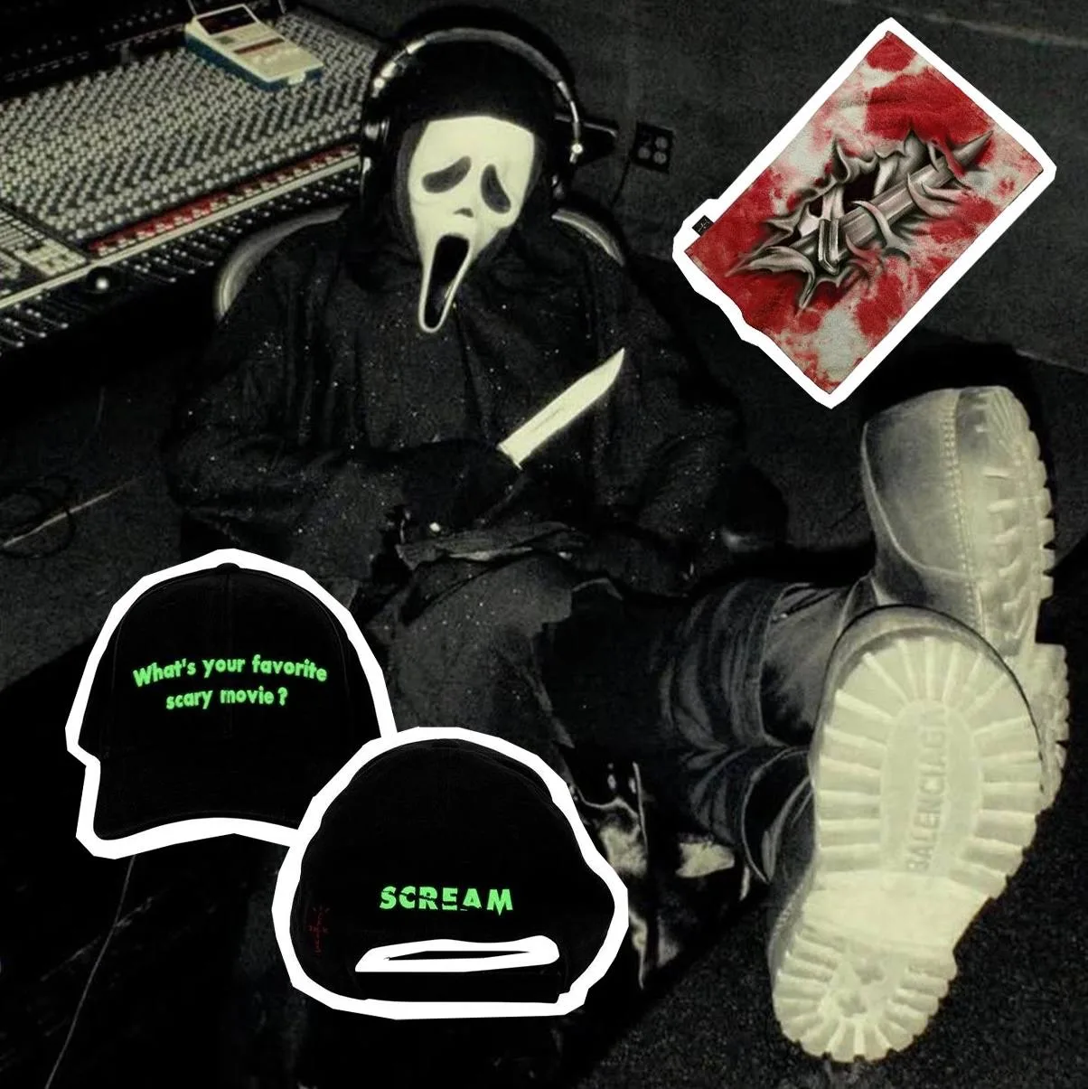 Все внимание на текстурированную кожа с эффектом змеиного принта — отсылка к прозвищу Black Mamba.