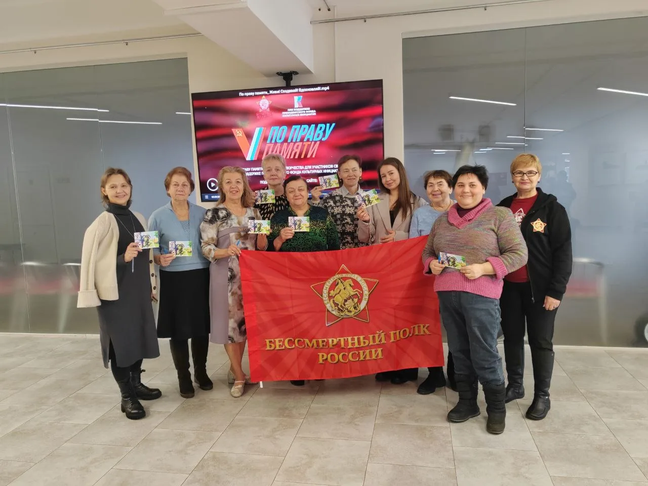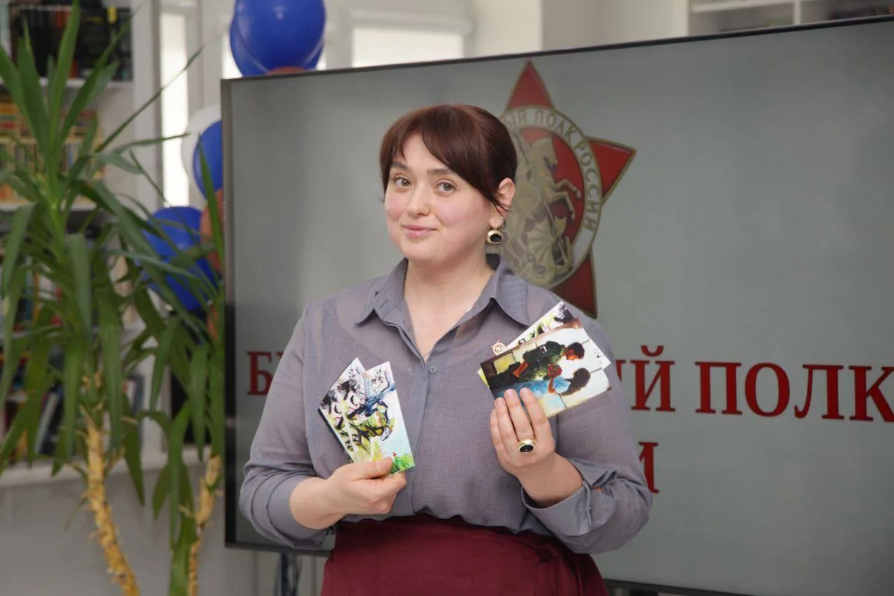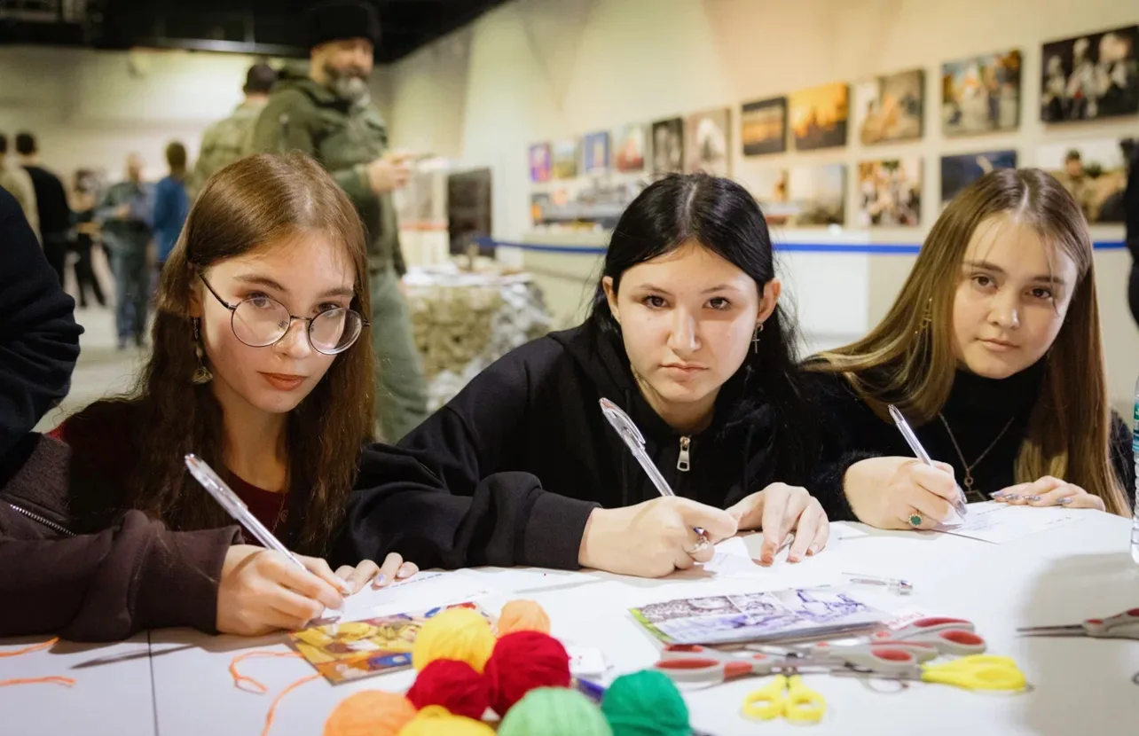 Традиционно, после показа участники мероприятия отправили поздравления участникам СВО на открытках, подготовленных из рисунков победителей конкурса «По праву памяти». Подписанные открытки сразу же были переданы в волонтерскую группу для отправки в зону СВО.