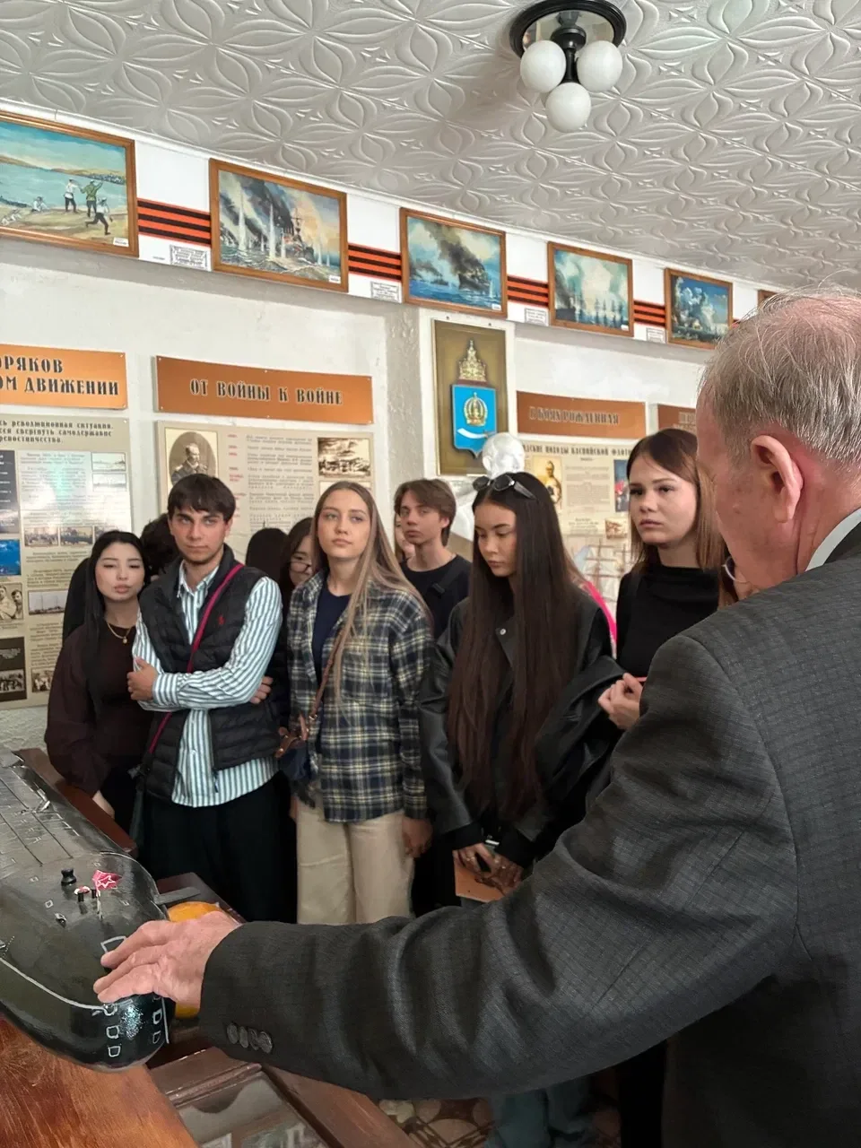 Завершилась встреча экскурсией по музею истории Каспийской флотилии, которую провёл Владимир Васильевич Мясищев. Ребята увидели макеты военных кораблей и подводных лодок, охраняющих морские рубежи России.